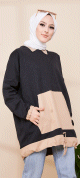 Tunique bicolore avec capuche pour femme (Tenue Hijab moderne et Sport) - Couleur noir et jaune moutarde - REF. 38287 (25.00 €) - En Promotion à 19.00 €
