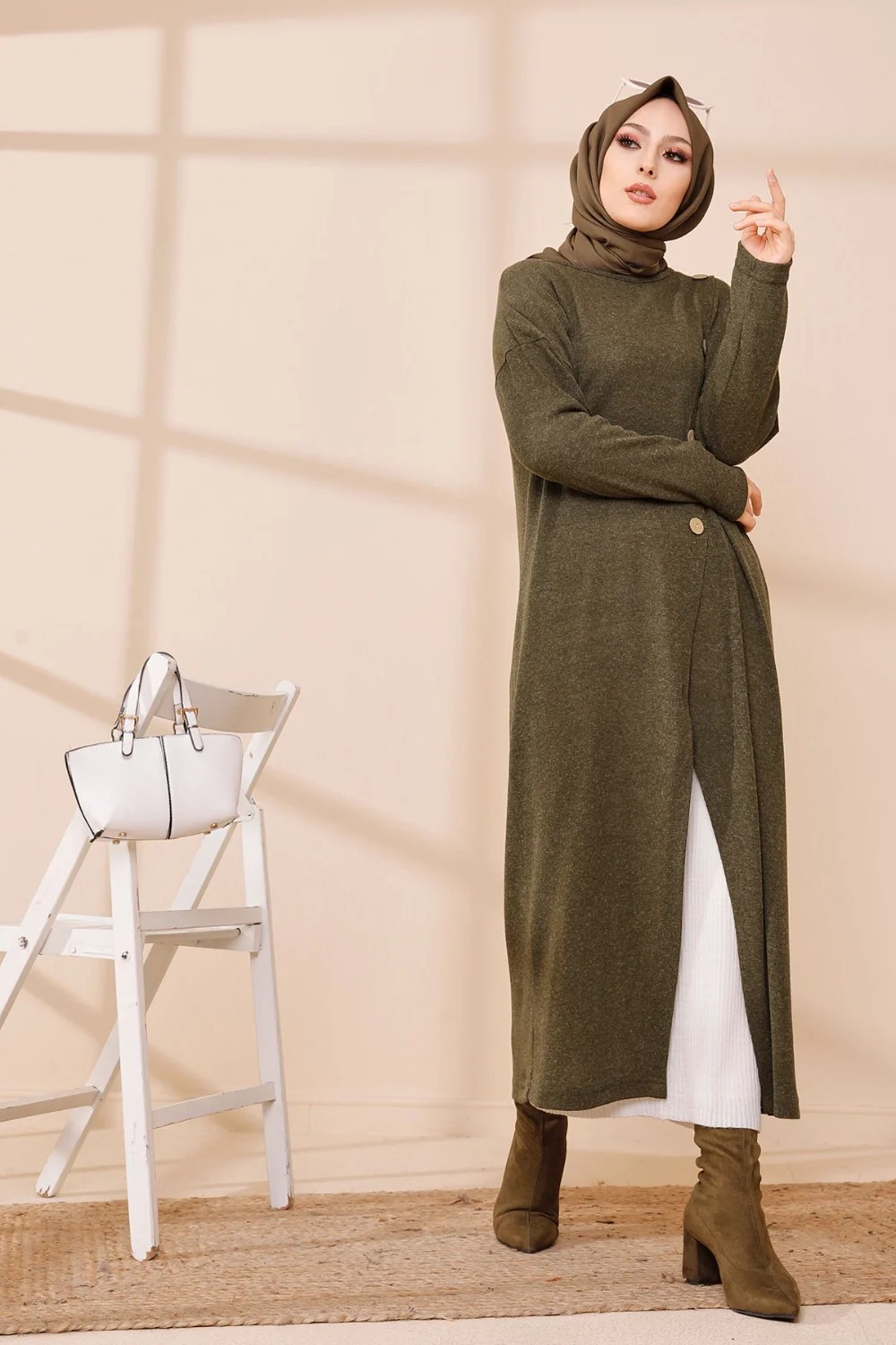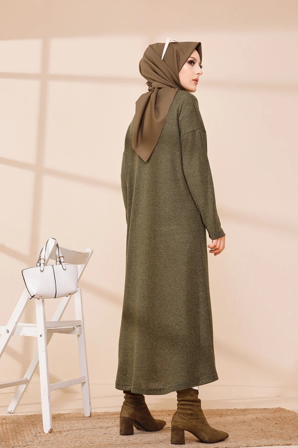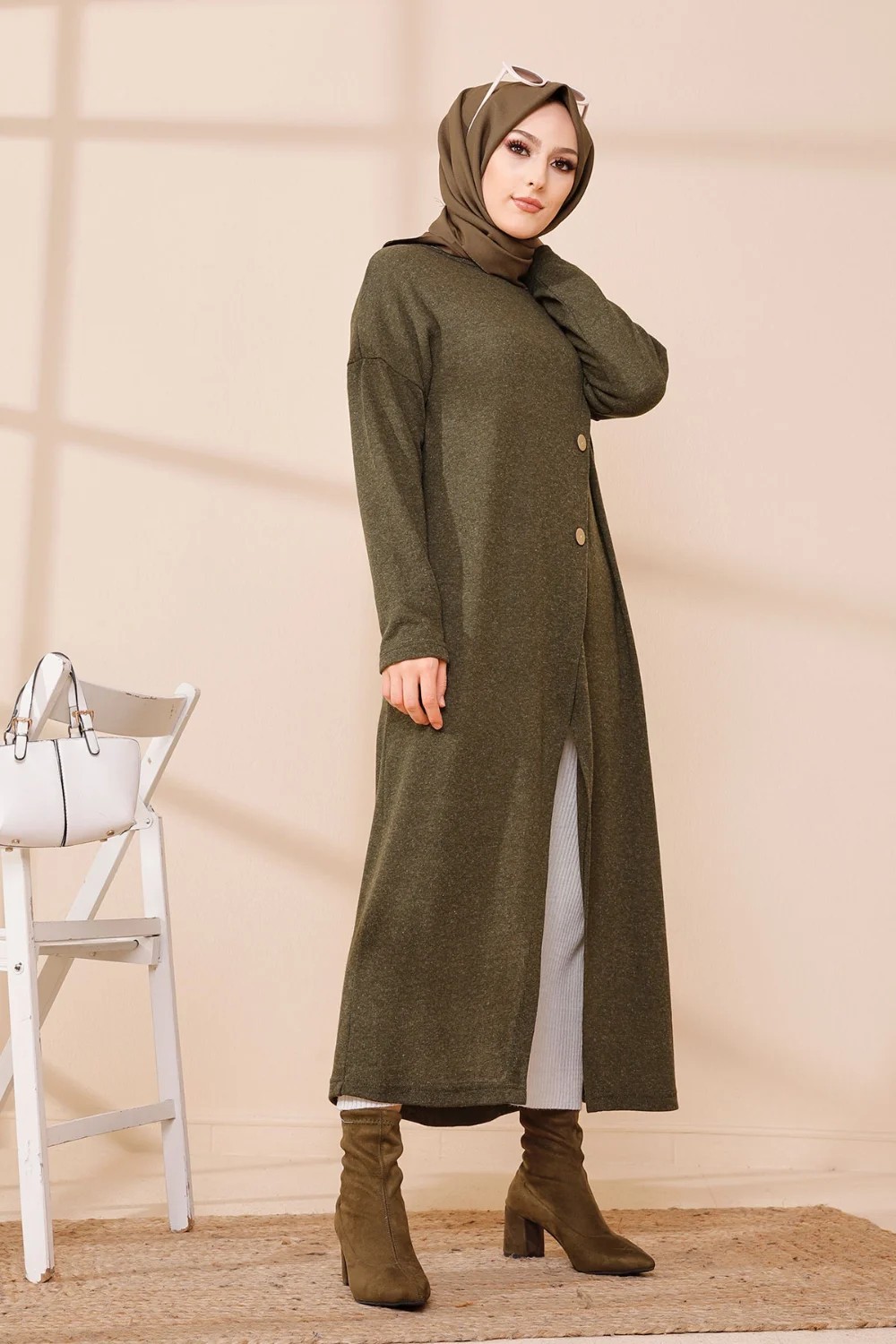 Robe Gilet pour femme (Tenue Hijab Chic Saison Automne-Hiver) - Couleur kaki