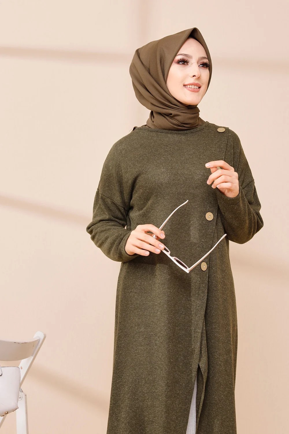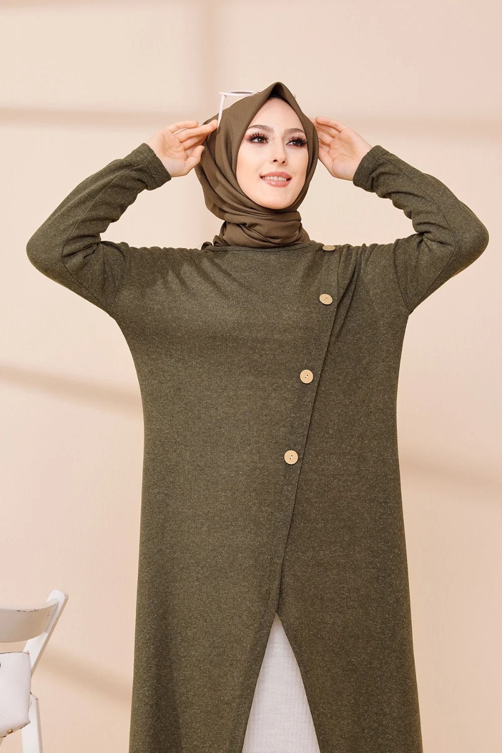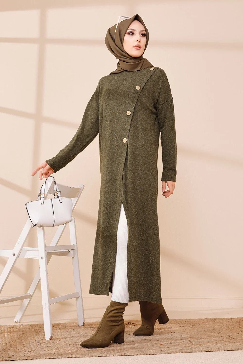 Robe Gilet pour femme (Tenue Hijab Chic Saison Automne-Hiver) - Couleur kaki
