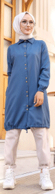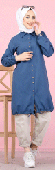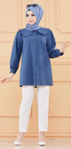 Tunique-Chemise ample boutonnée (Vetement décontracté femme voilée) - Couleur bleu - REF. 33198 (19.90 €)