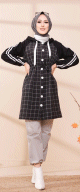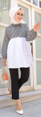 Tunique ample à carreaux (Boutique en ligne vêtement femme musulmane) - Couleur blanc et Noir - REF. 33115 (18.00 €) - En Promotion à 16.90 €