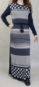 Robe maxi-longue en maille à motifs bicolore pour femme (Nouveauté Automne-Hiver) - Couleur Bleu marine - REF. 34019 (29.90 €)