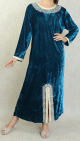 Robe arabe traditionnelle en velours brodée pour femme (Saison Automne-Hiver - Grande Taille disponible) - Couleur Bleu canard - REF. 34294 (29.00 €)