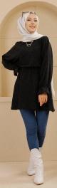 Tunique avec capuche (Boutique Vetement Moderne Hijab) - Couleur noir - REF. 37721 (26.00 €) - En Promotion à 19.90 €