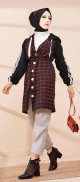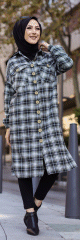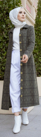 Chemise longue à carreaux (Vêtement hijab boutique en ligne) - Couleur noir et kaki - REF. 38336 (24.90 €)