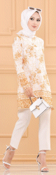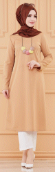 Tunique motifs fleurs et arabesques pour femme (Vêtement Hijab Chic) - Couleur vison - REF. 37138 (19.90 €)