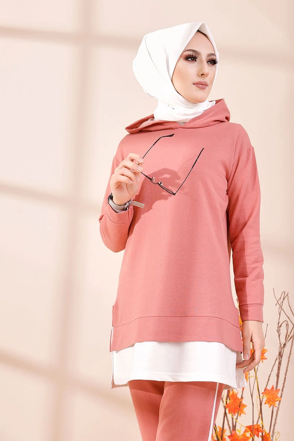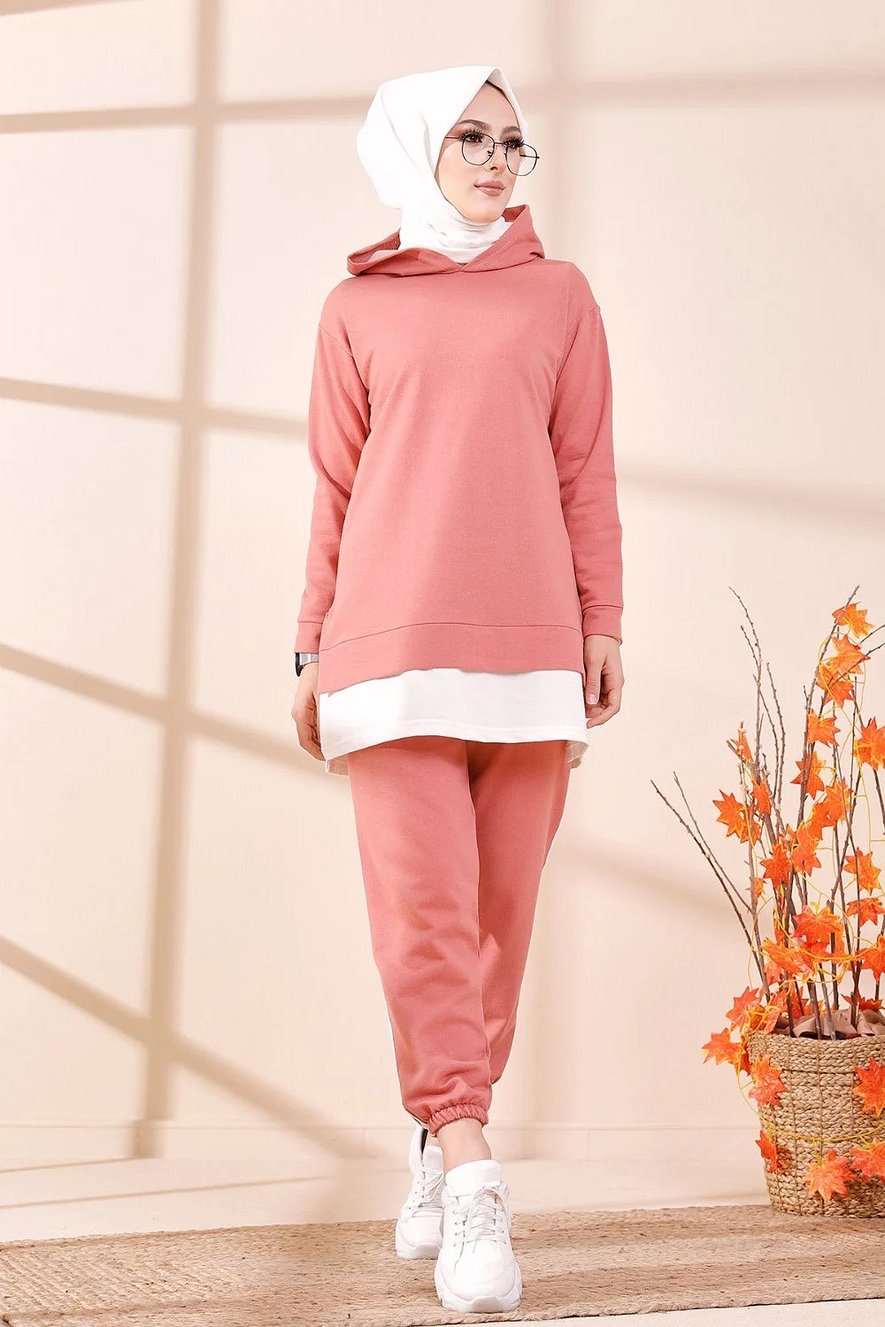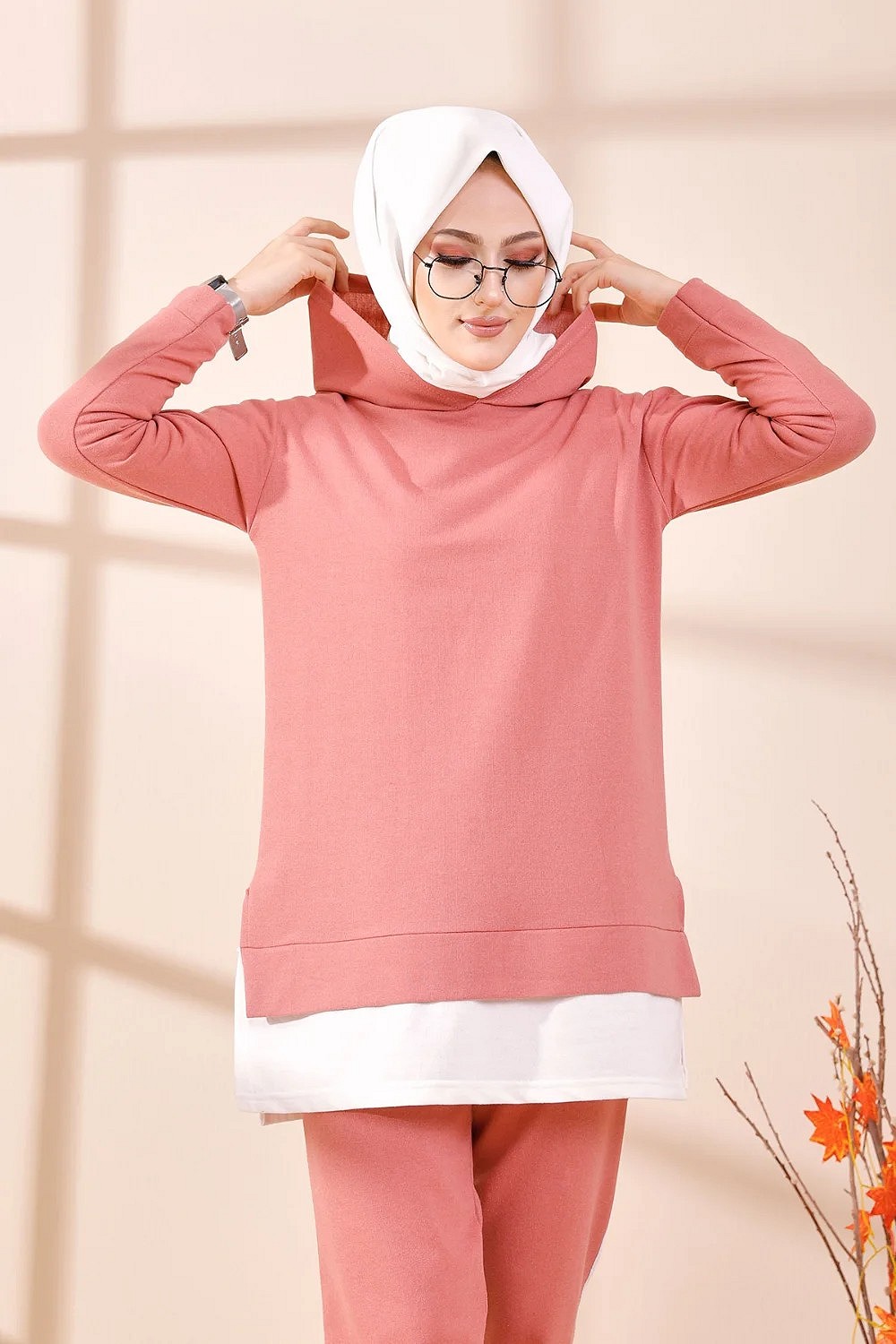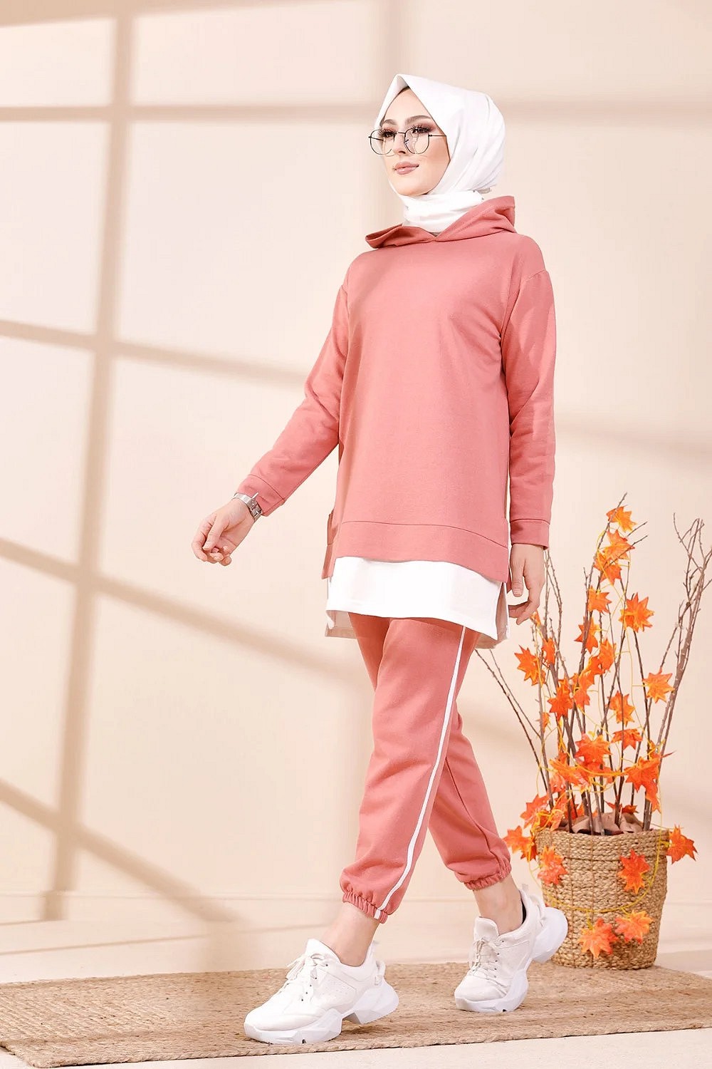 Ensemble décontracté et tenue de sport 2 pièces pour femme (Mode musulmane) - Couleur rose et blanc Vetement & Accessoire