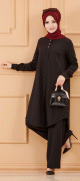 Ensemble tunique boutonnée et pantalon assorti (Style femme hijab) - Couleur noir - REF. 36013 (36.90 €)