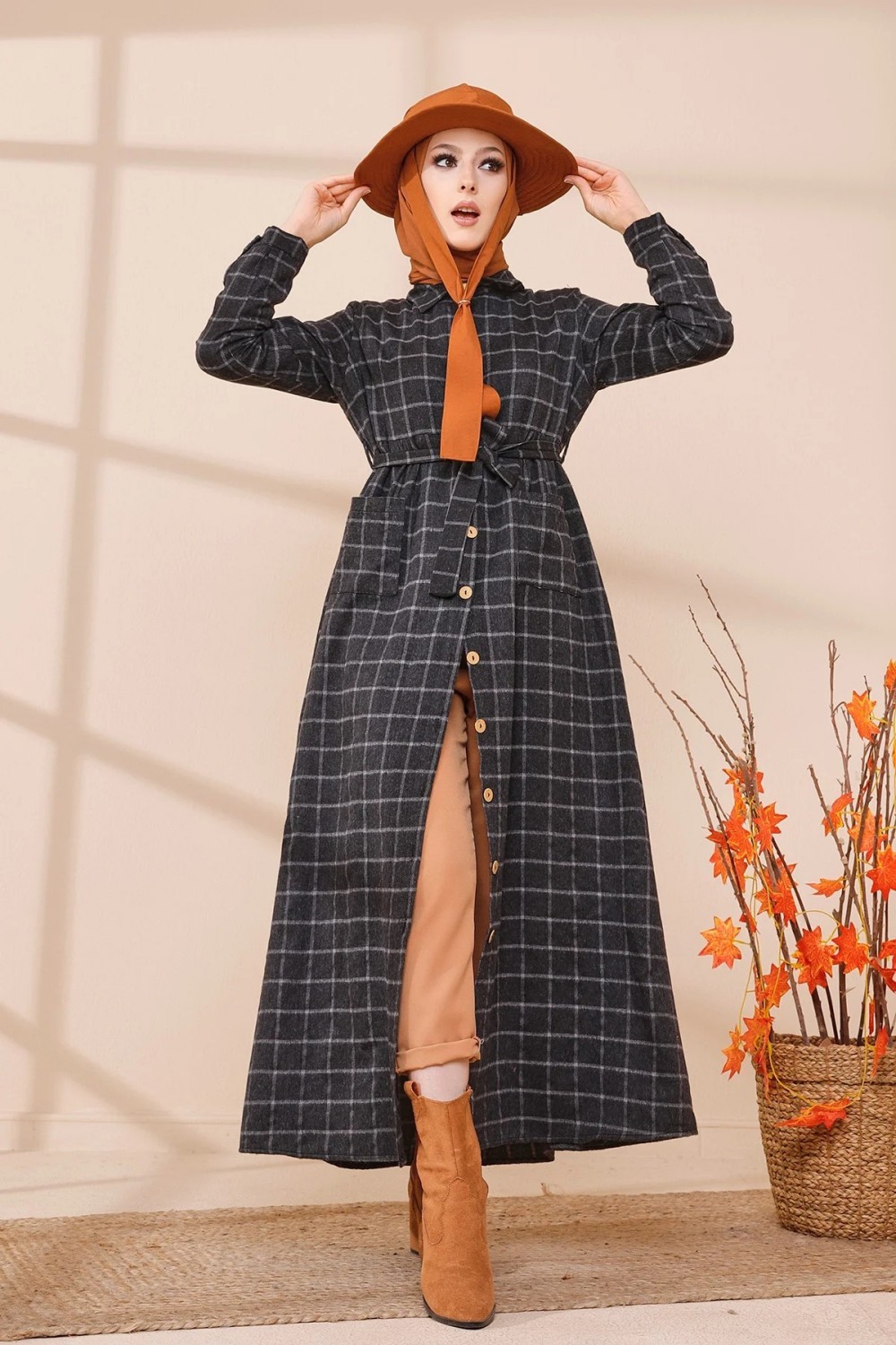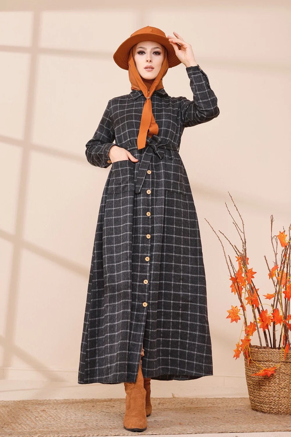 Robe longue, col chemise, manches droites finition bouton, taille cintrée, ceinture assortie à passants, 2 poches plaquées, fermeture sur toute la longueur a boutons. Optez pour cette robe originale et ses carreaux indémodables. Son tissu doux et chaud conviendra parfaitement pour la saison automne hiver.