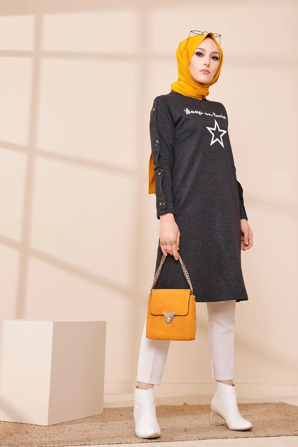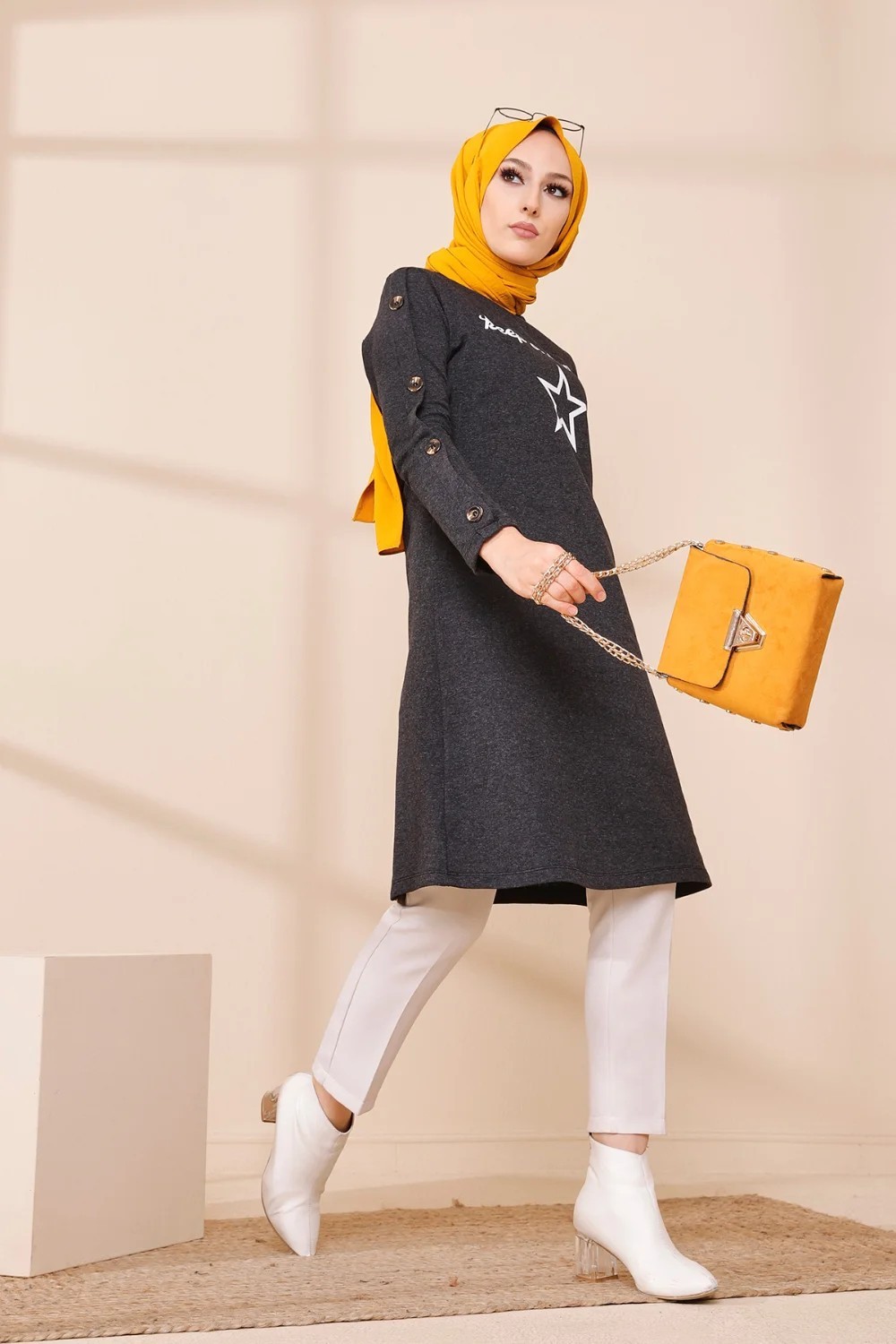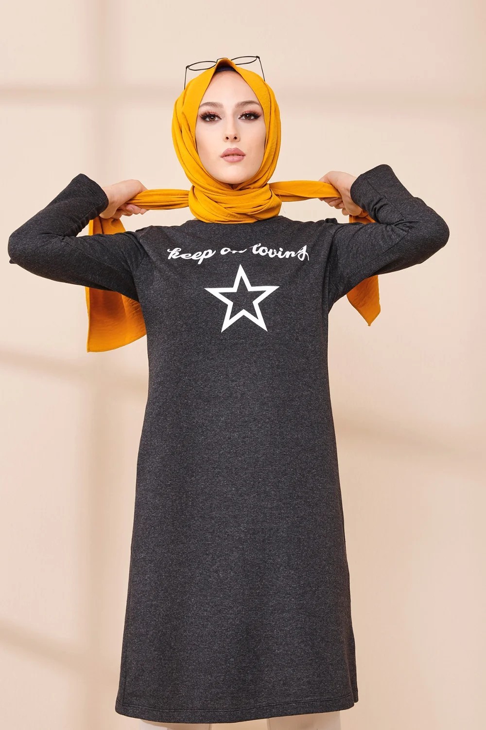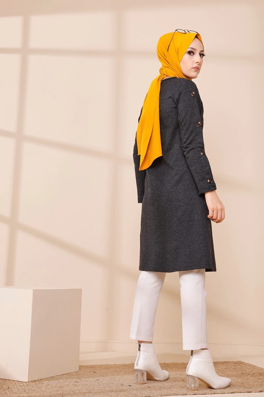 Robe - Tunique longue pour femme (Casual Hijab Outfit) - Couleur anthracite - REF. 35453 (28.00 €)
