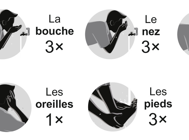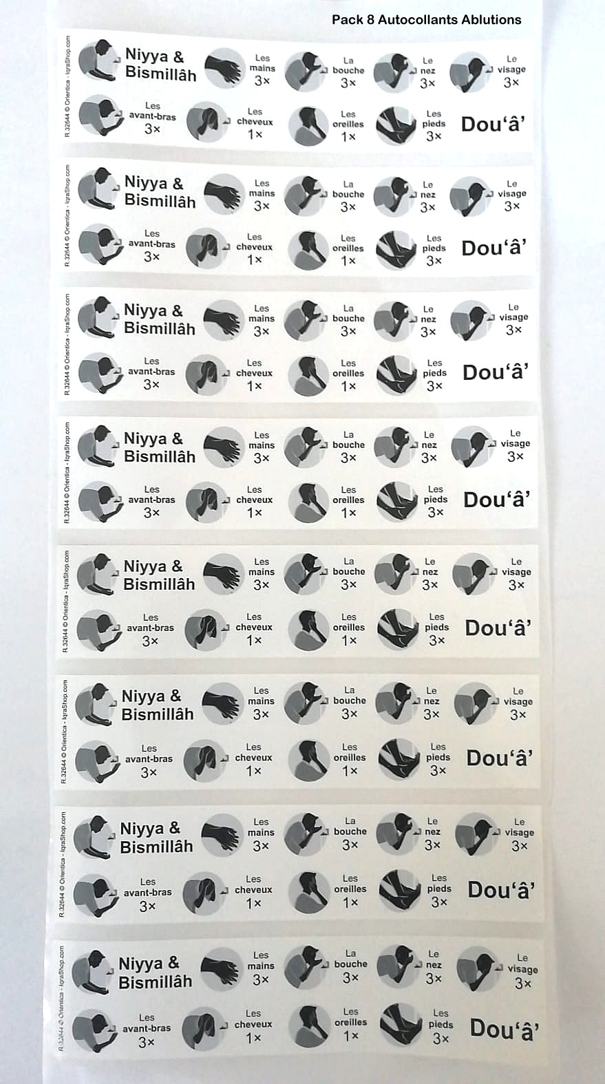 Lot de 8 Stickers autocollants très pratique pour l'apprentissage et la révision des étapes clés pour effectuer ses ablution avec de l'eau (woudou').