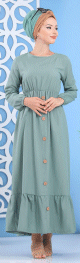 Robe longue de ville chic à boutons pour femme - Couleur vert clair - REF. 30314 (29.90 €) - En Promotion à 23.00 €