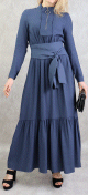 Robe tissu polaire avec ceinture (Vêtement Hijab Saison Automne-Hiver) - Couleur bleu marine - REF. 35701 (26.90 €)