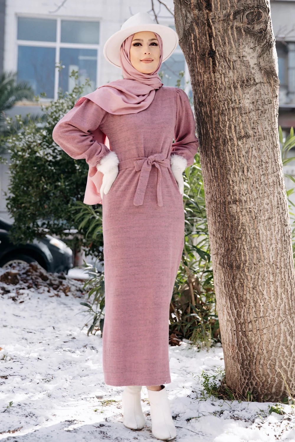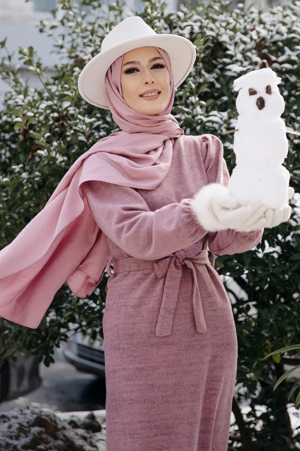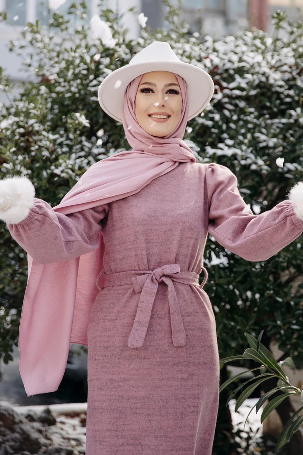 Robe tissu polaire avec ceinture (Vêtement Hijab Saison Automne-Hiver) - Couleur saumon Vetement & Accessoire