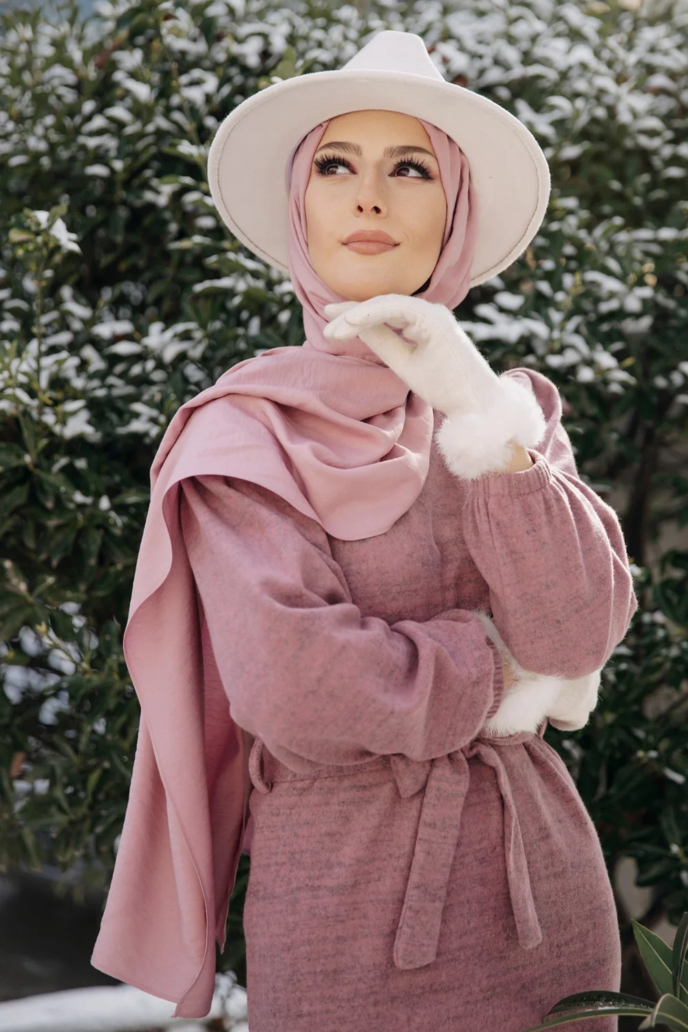 Robe tissu polaire avec ceinture (Vetement Hijab Saison Automne-Hiver) - Couleur saumon