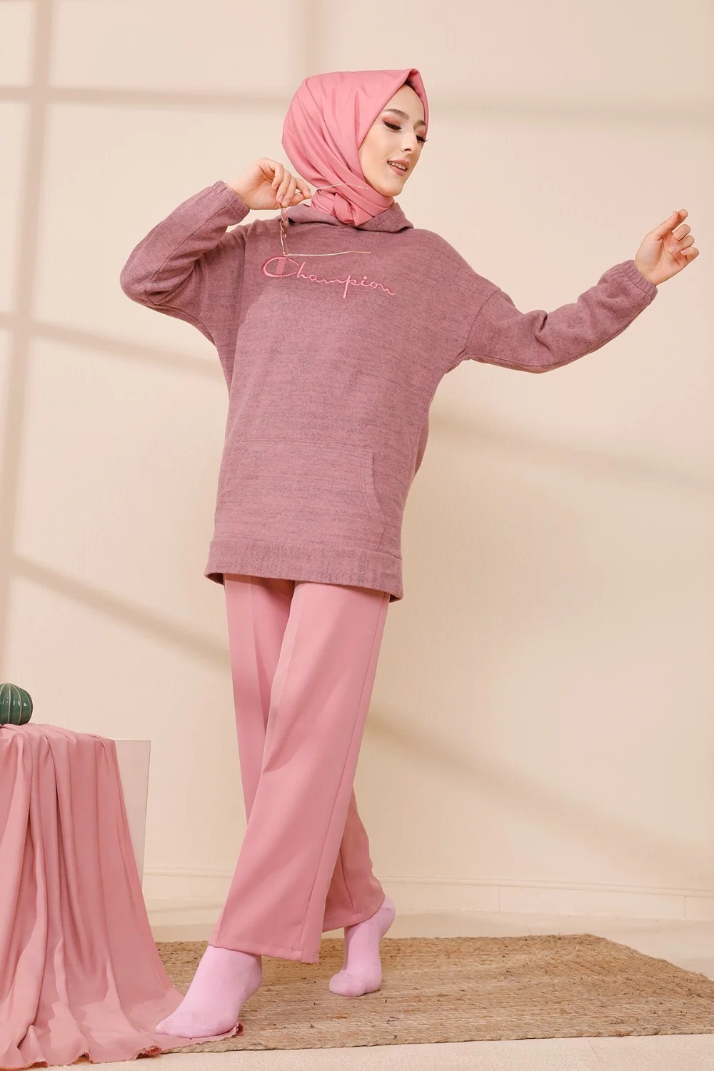 Ensemble tunique et pantalon assorti avec ceinture (Vetement pour femme voilée) - Couleur brique - REF. 34641 (29.00 €)