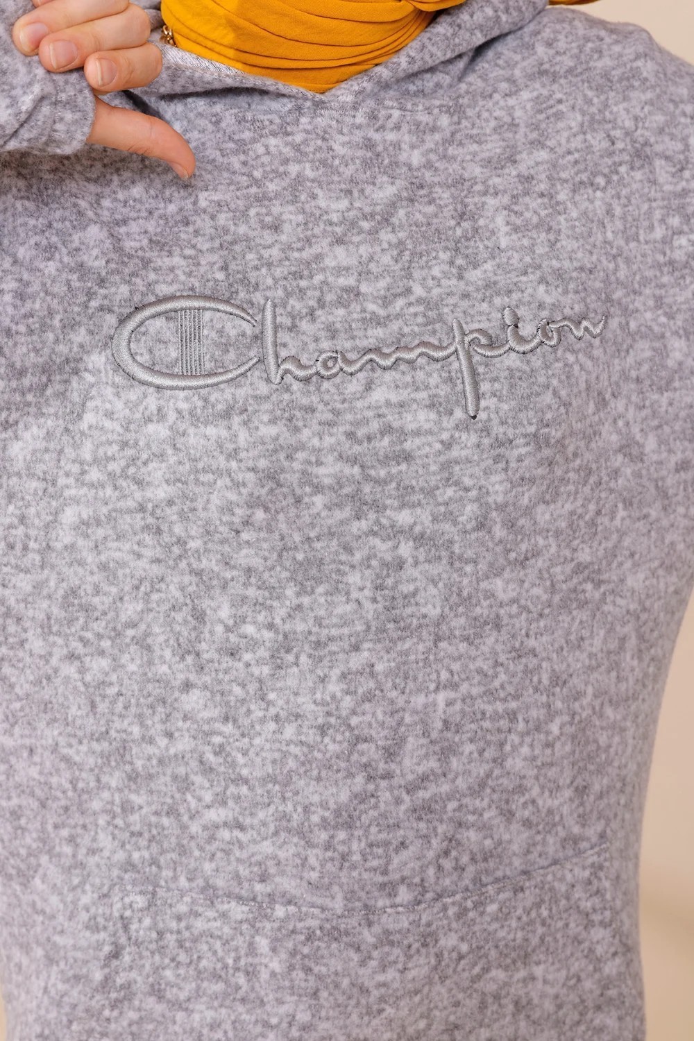 Sweat femme avec capuche brode "Champion" (Automne Hiver 2025) - Couleur gris clair