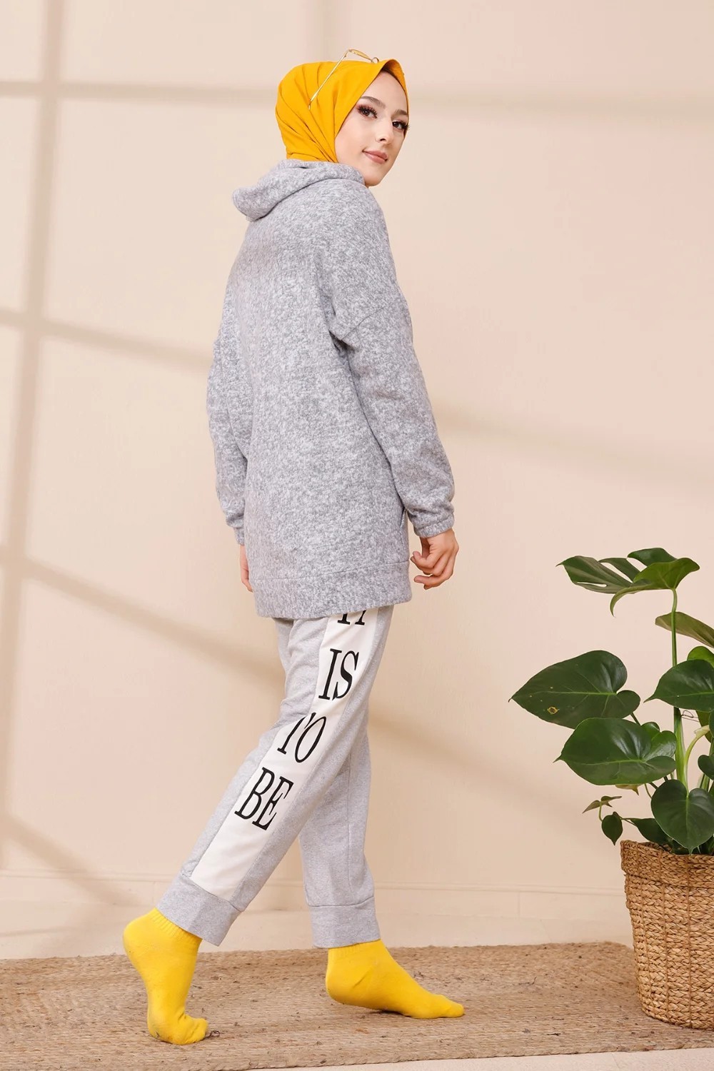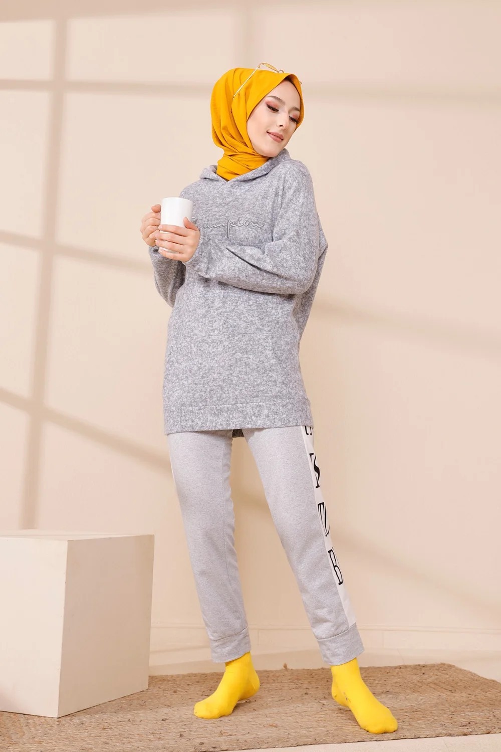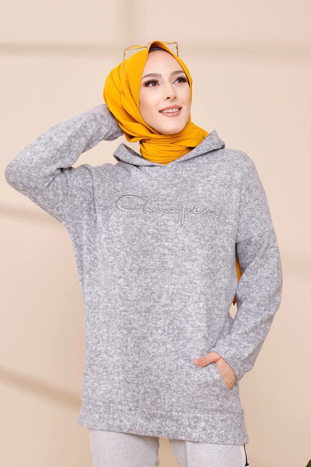 Tunique type sweat long à capuche (Vêtement de tous les jours pour Hijab) - Couleur gris clair - REF. 35429 (22.00 €) - En Promotion à 16.90 €