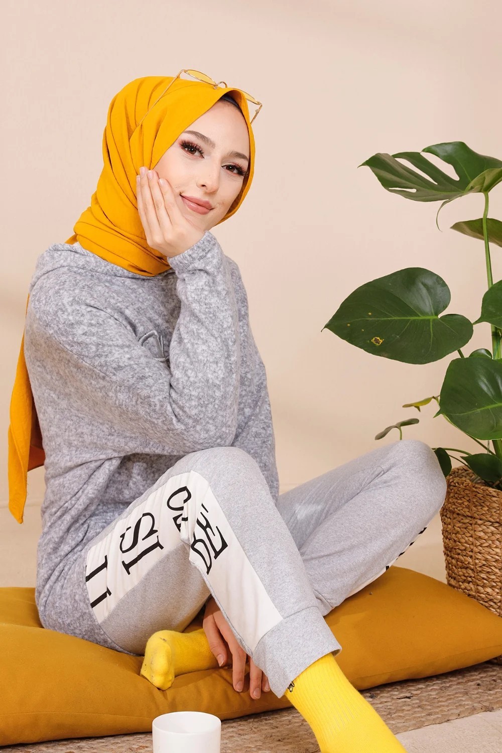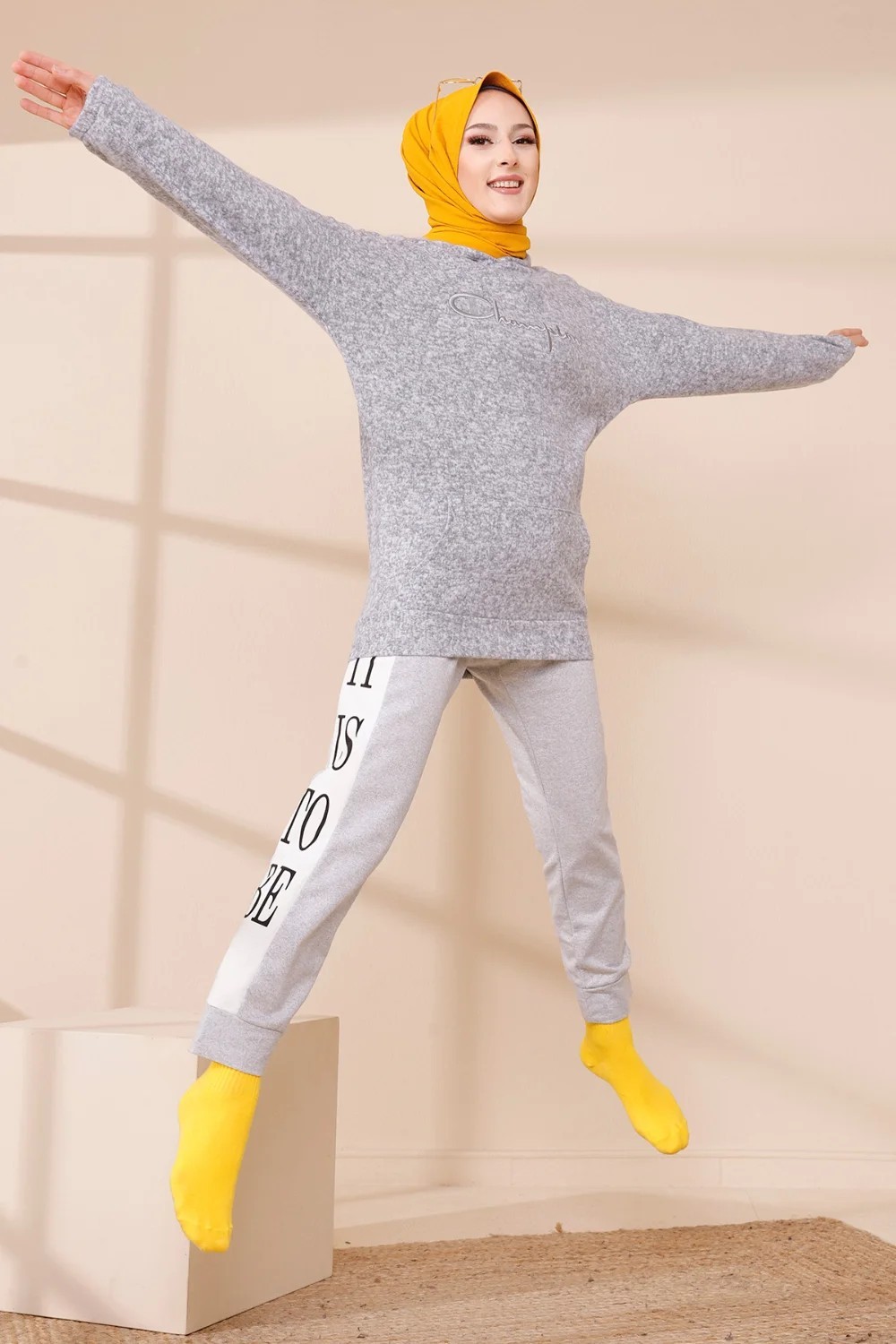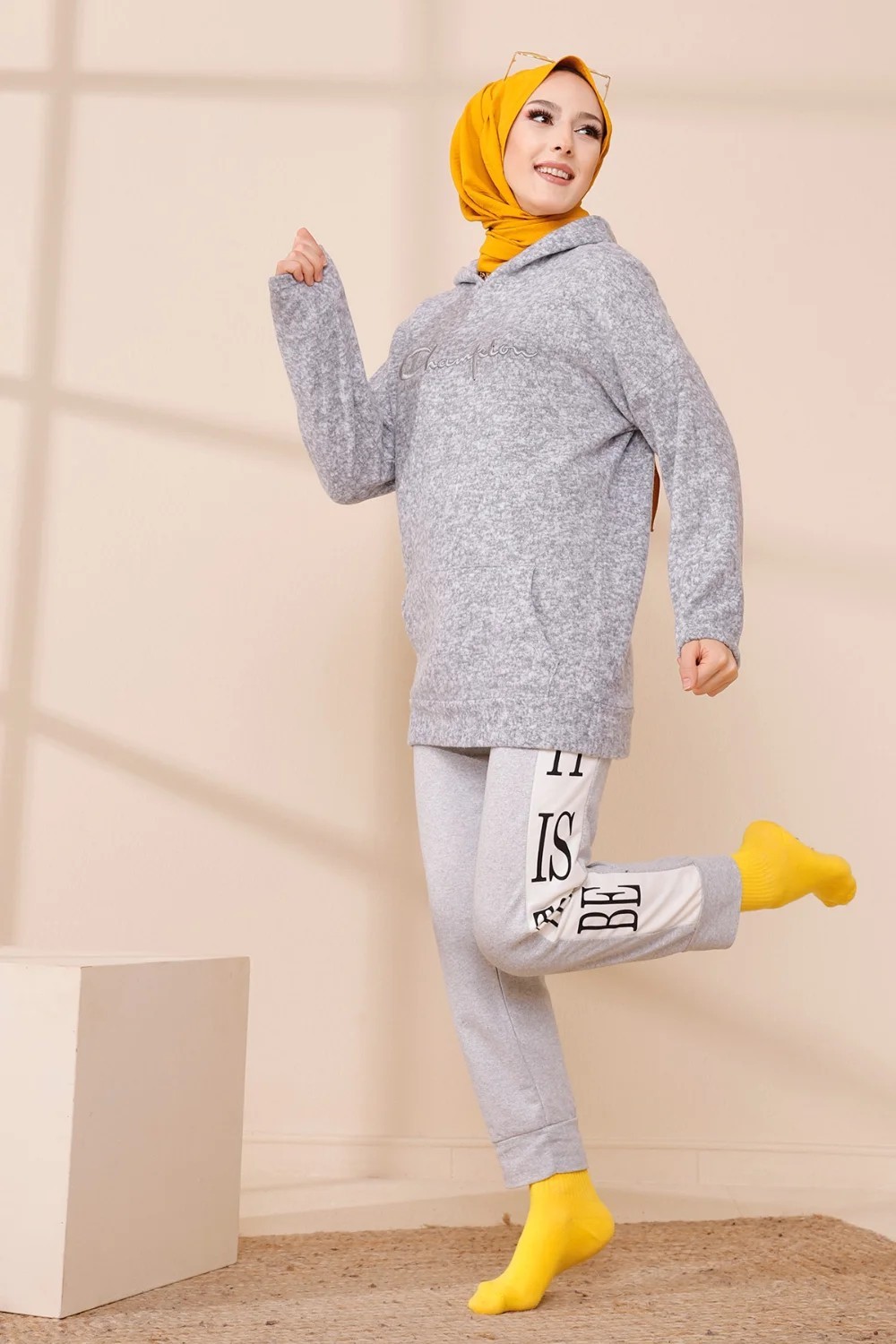 Tunique type sweat long à capuche (Vêtement de tous les jours pour Hijab) - Couleur gris clair - REF. 35429 (22.00 €) - En Promotion à 16.90 €