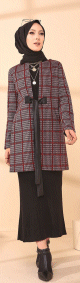 Veste Manteau femme avec ceinture intégrée (Tunique Automne Hiver - Boutique Vêtement Hijab Turque en ligne) - Couleur noir et bordeaux - REF. 35327 (19.90 €)