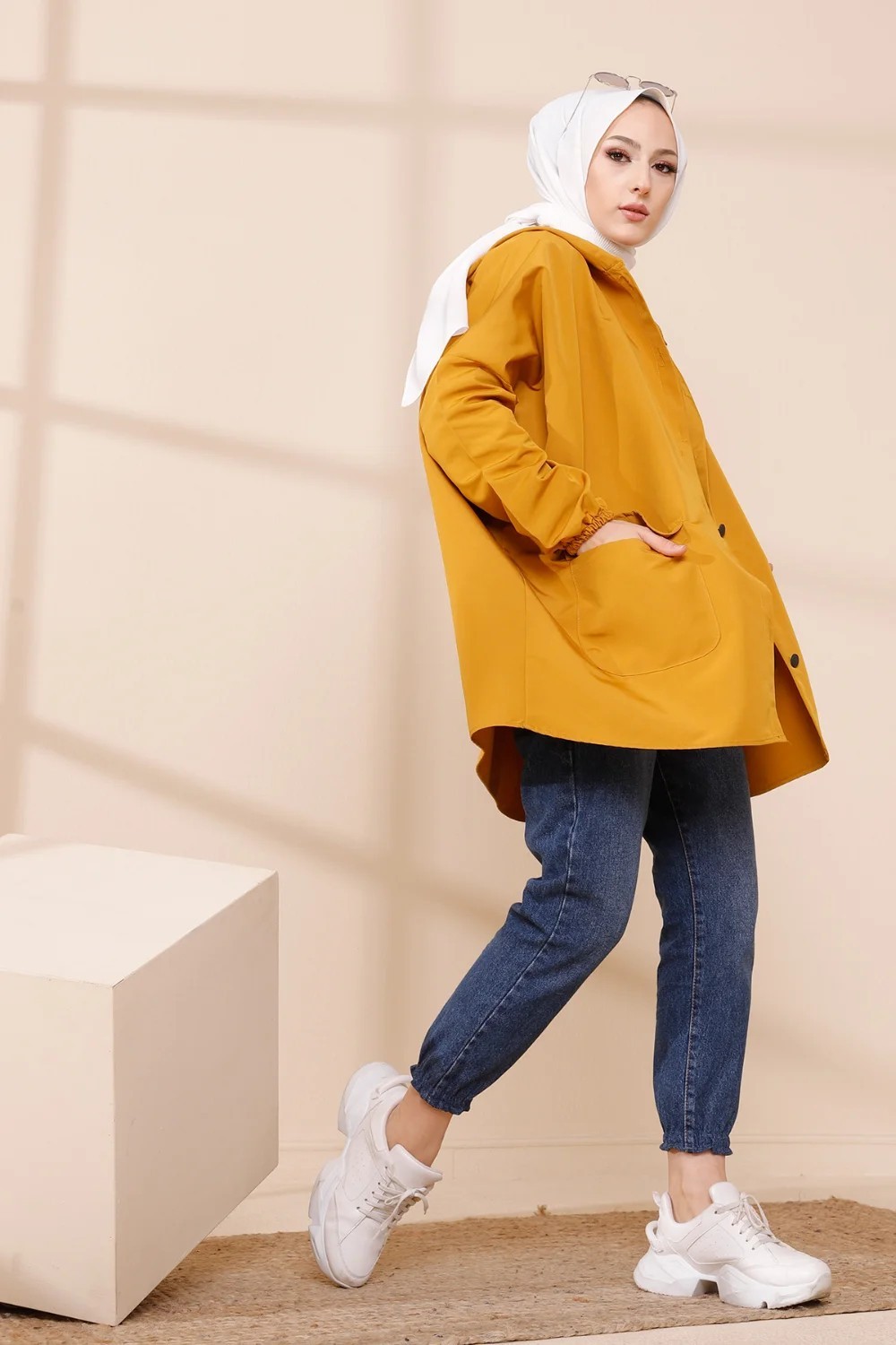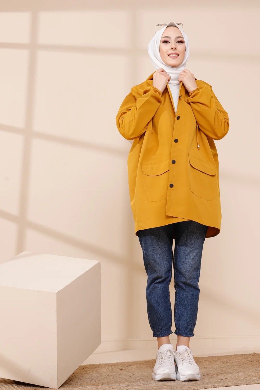 Trench ample - Parka tissu épais pour femme (Vêtement Hijab Saisons Automne Hiver) - Couleur moutarde Vetement & Accessoire