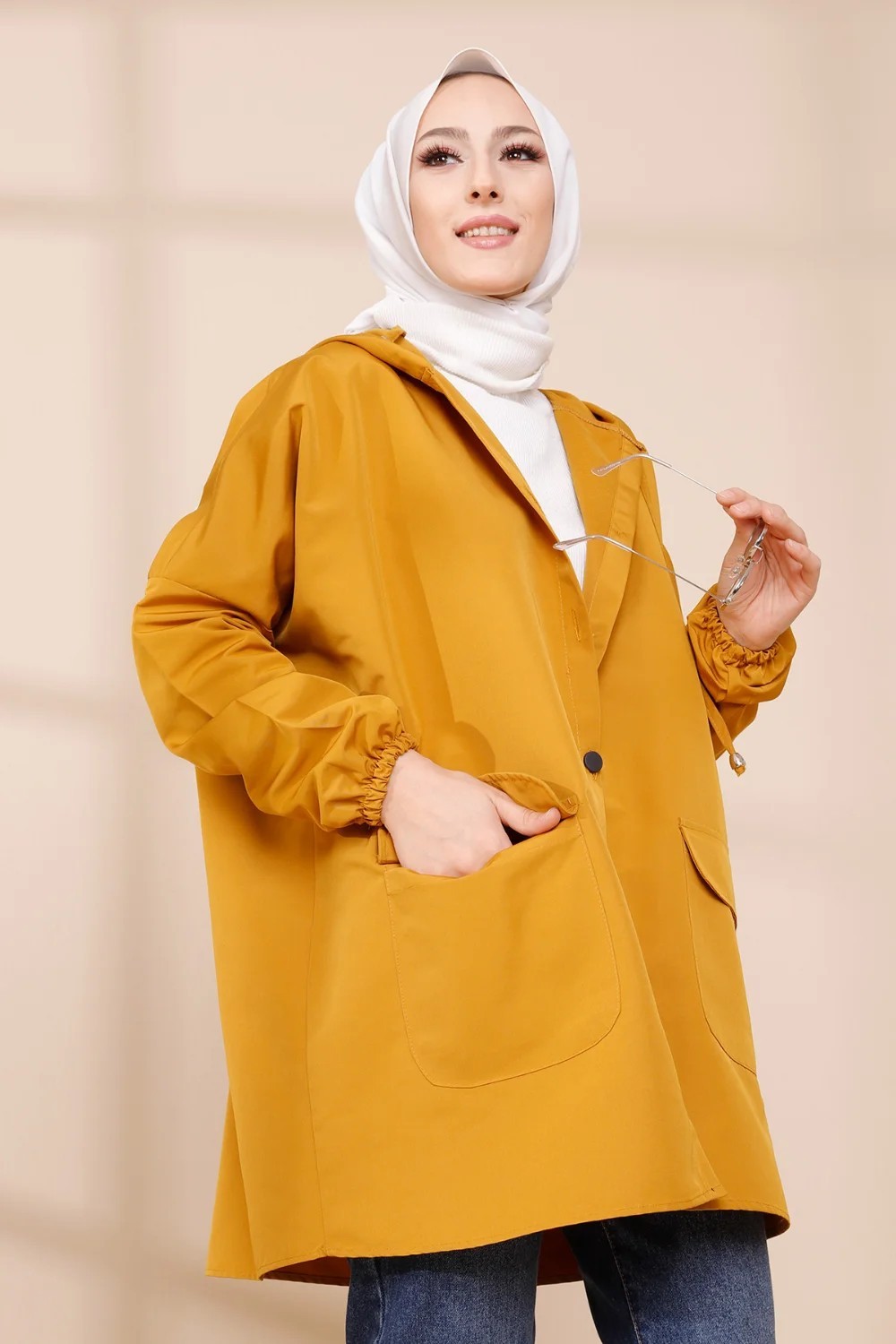 Trench ample - Parka tissu epais pour femme (Vetement Hijab Saisons Automne Hiver) - Couleur moutarde