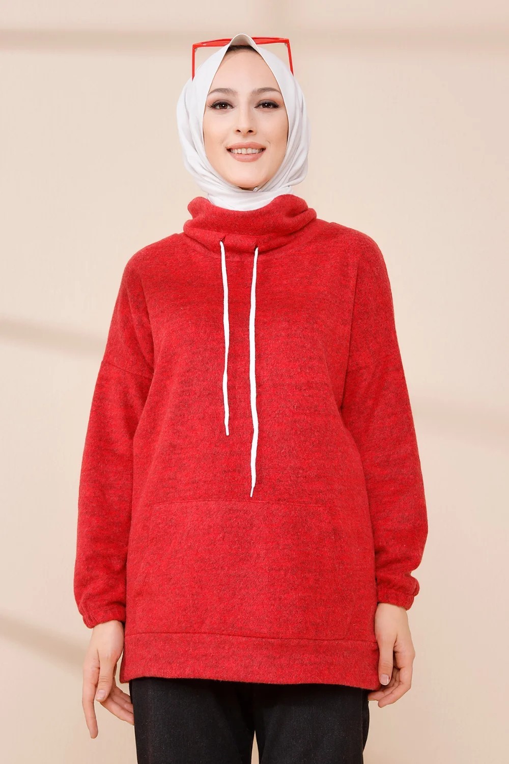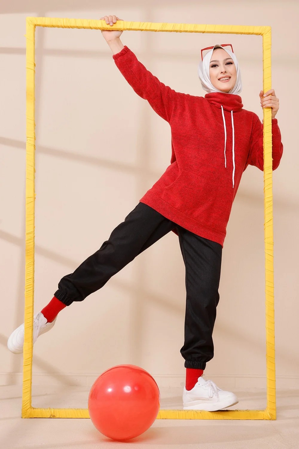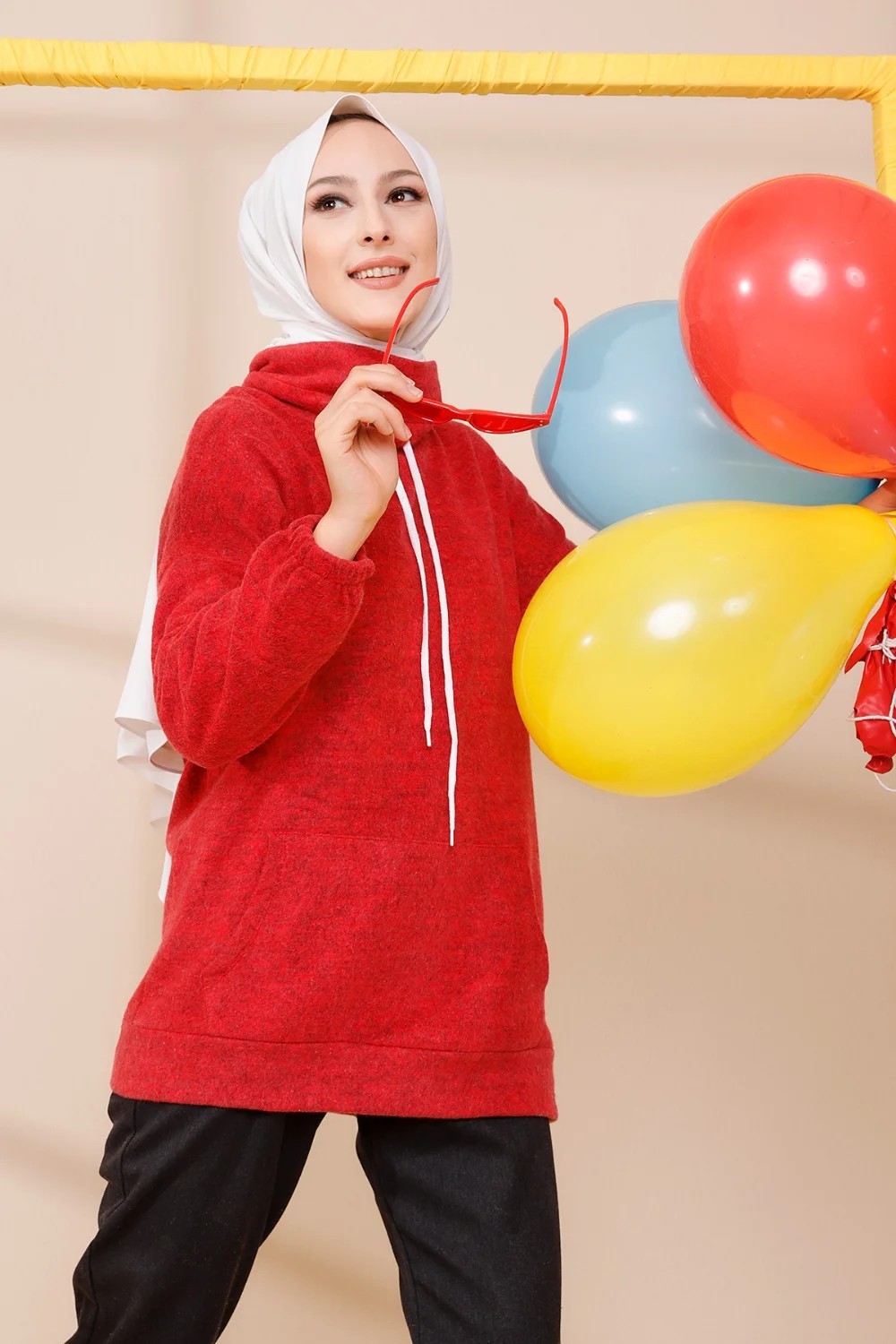 Tunique décontractée avec capuche pour femme (Tenue hijab moderne et sport) - Couleur bordeaux - REF. 35774 (23.00 €)