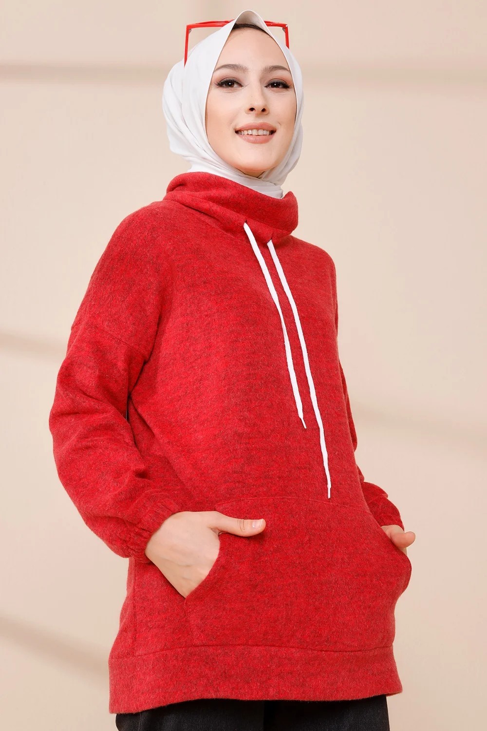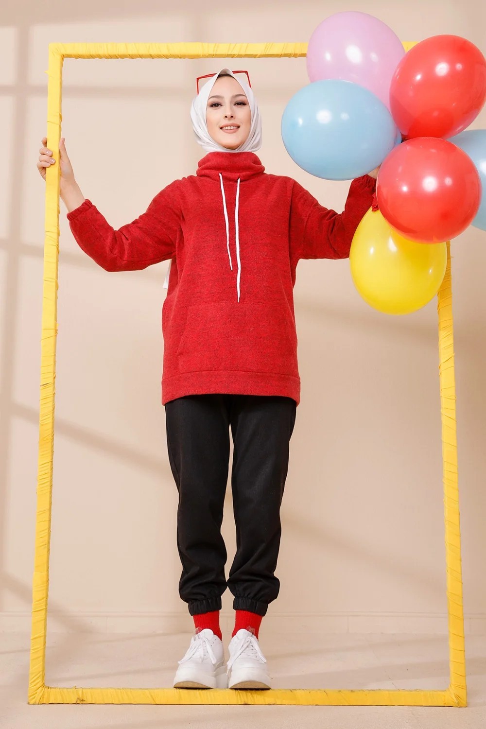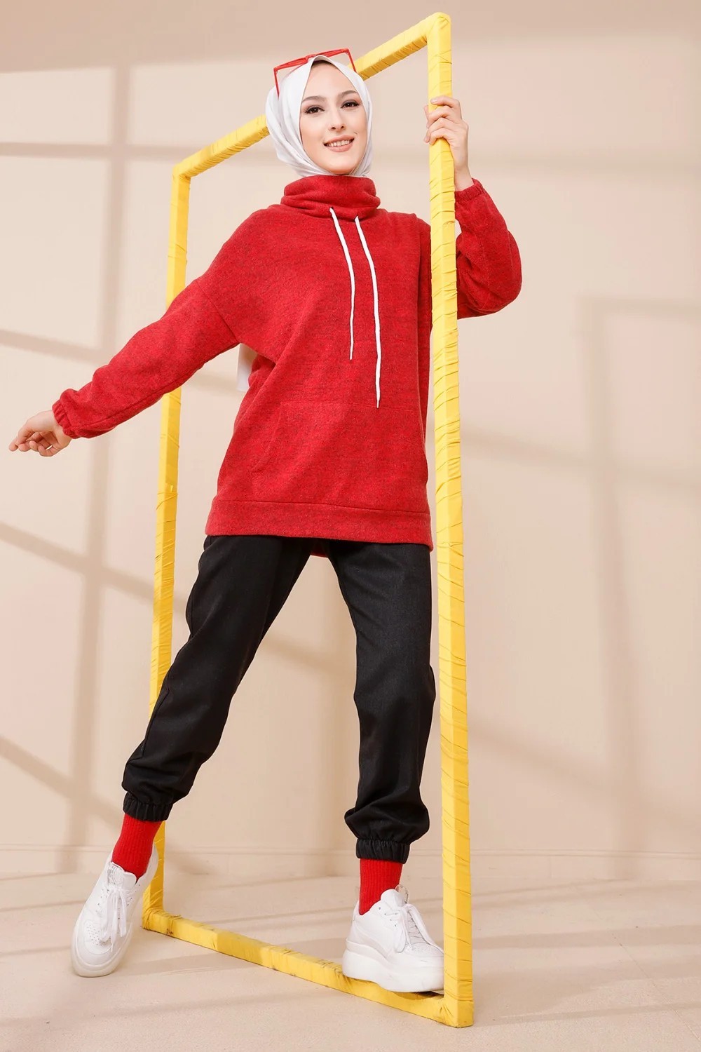 Tunique décontractée avec capuche pour femme (Tenue hijab moderne et sport) - Couleur bordeaux - REF. 35774 (23.00 €)