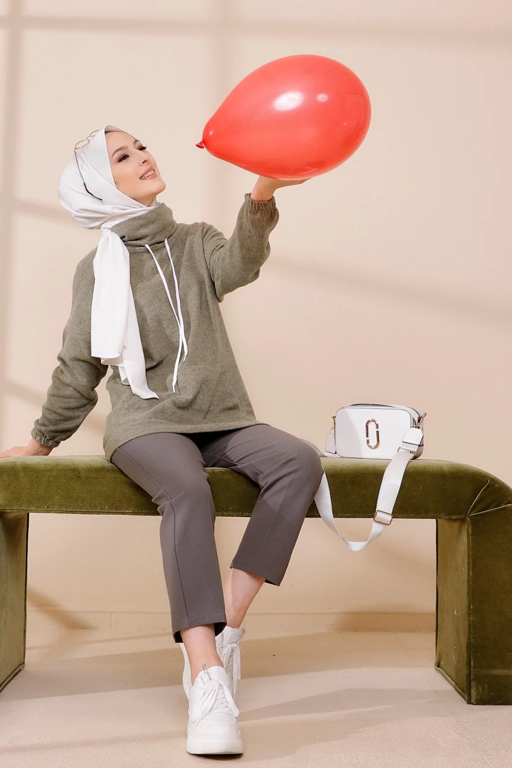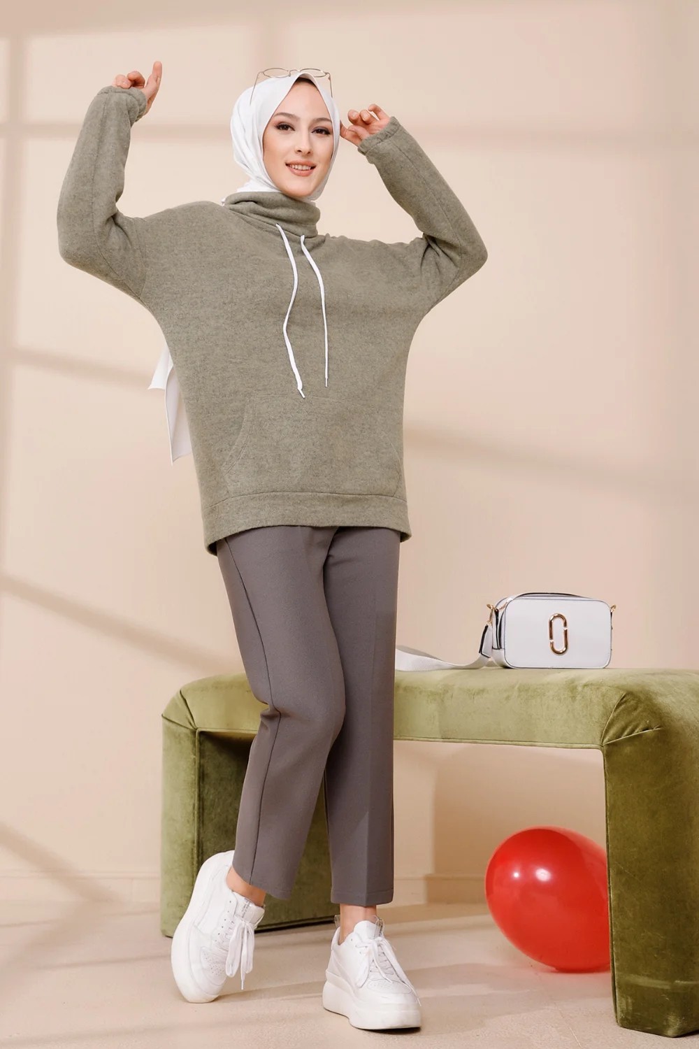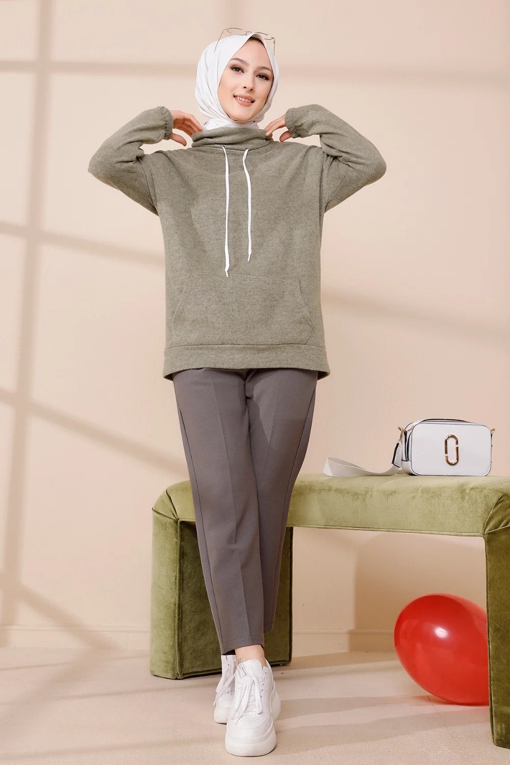 Sweat à capuche pour femme - Couleur kaki Vetement & Accessoire
