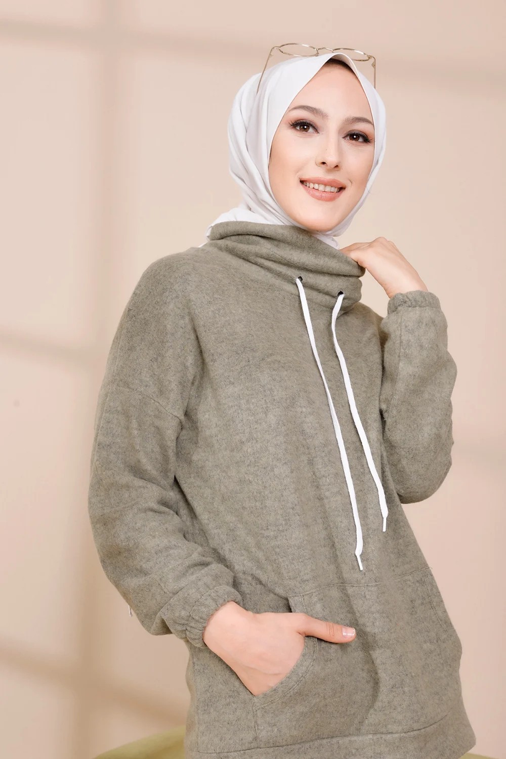 Tunique type sweat-shirt à capuche pur femme (Tenue Hijab décontracté et moderne) - Couleur beige - REF. 38286 (22.00 €)