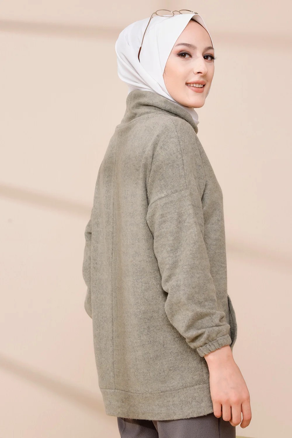 Cardigan Gilet long zippé style hijab sportswear col à capuche pour femme voilée - Couleur gris clair - REF. 35762 (24.90 €)