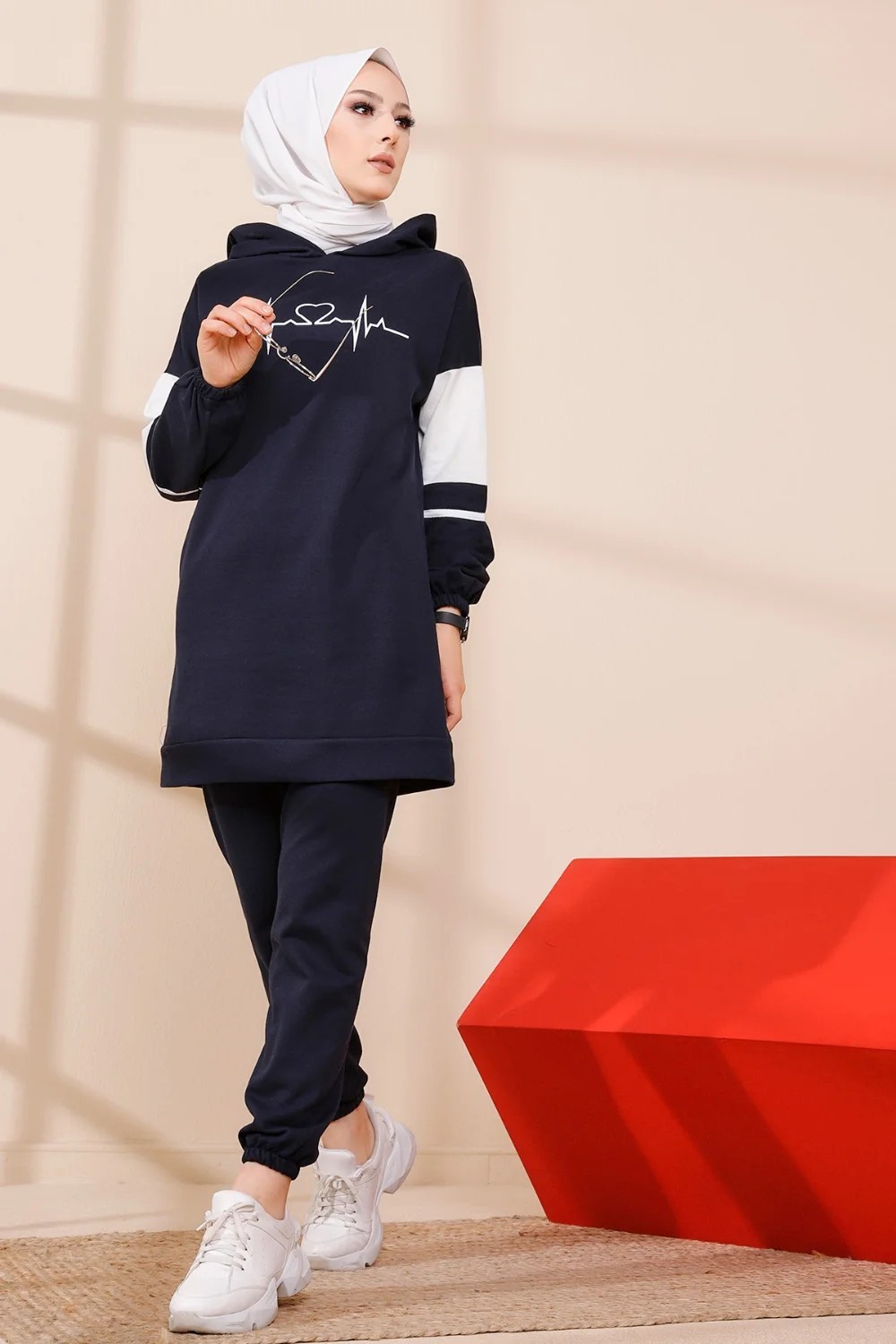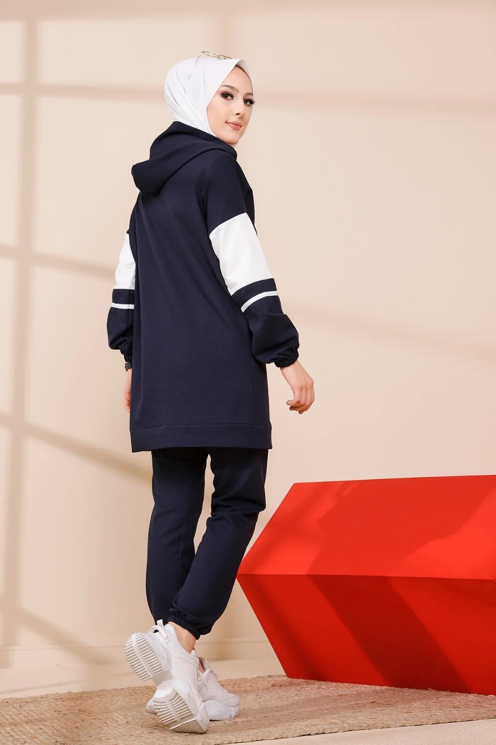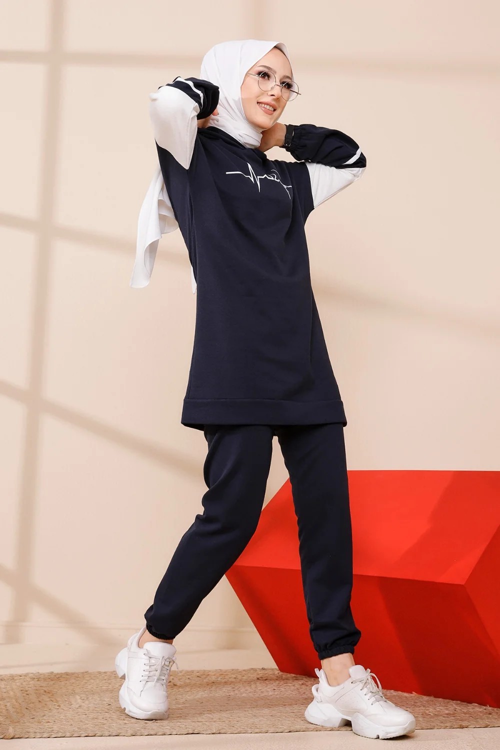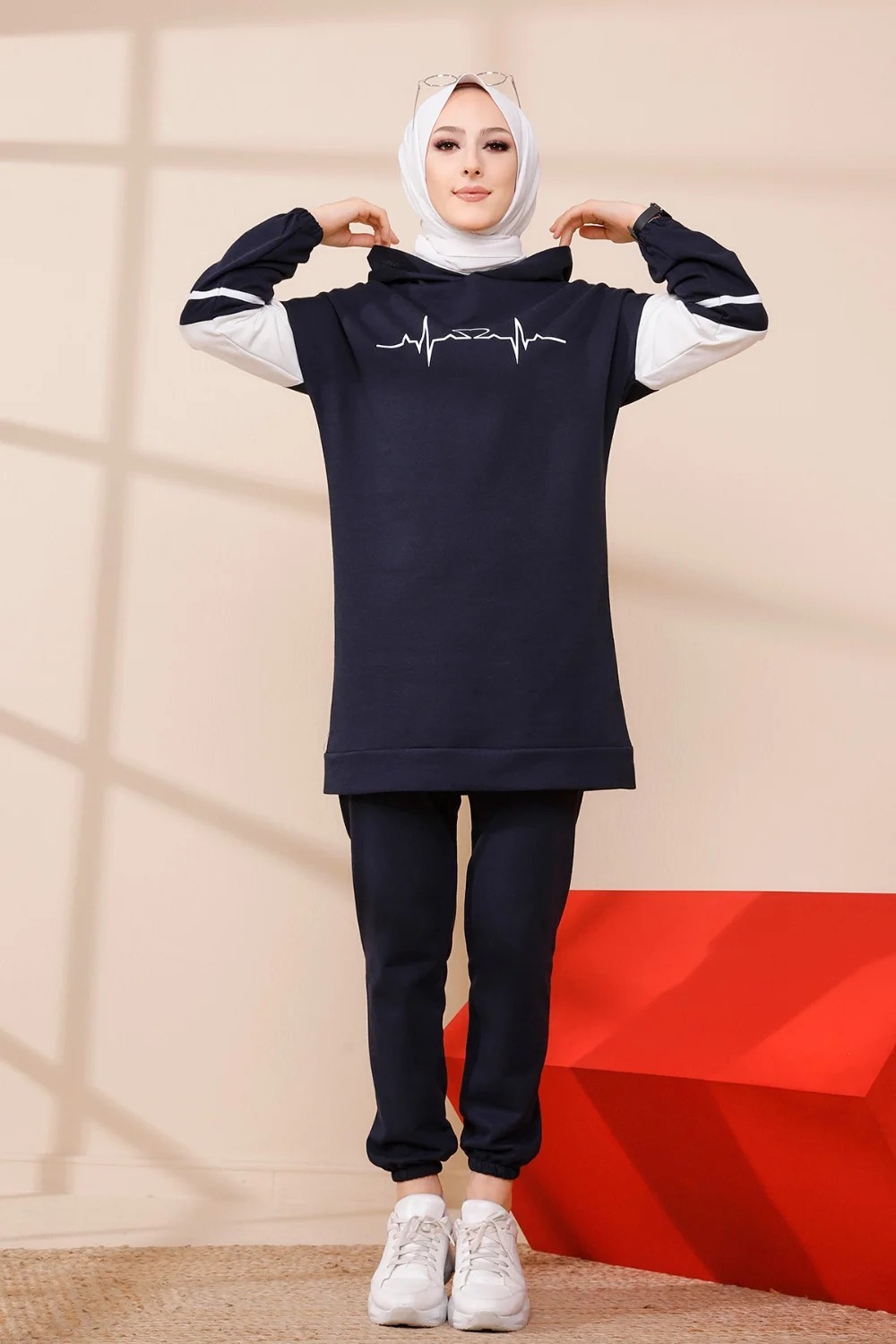 Ensemble moderne pour femme Sweat-shirt à capuche et Pantalon (Tenue décontractée et sport pour hijab) - Couleur bleu marine Vetement & Accessoire