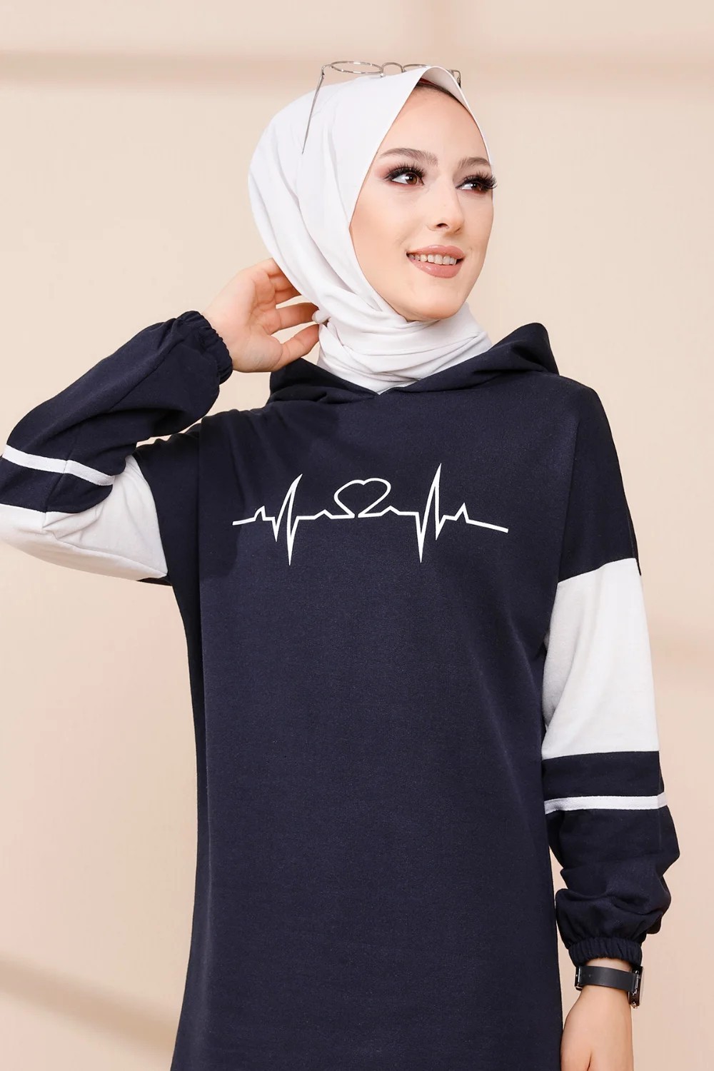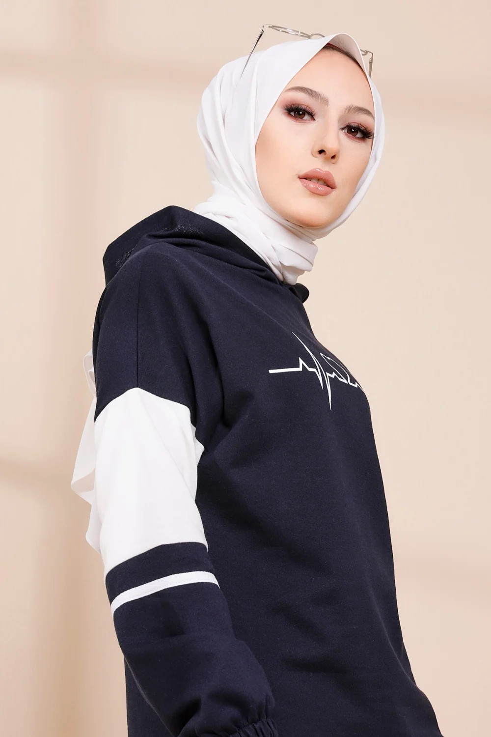 Tunique type sweat-shirt à capuche pur femme (Tenue Hijab décontracté et moderne) - Couleur beige - REF. 38286 (22.00 €)