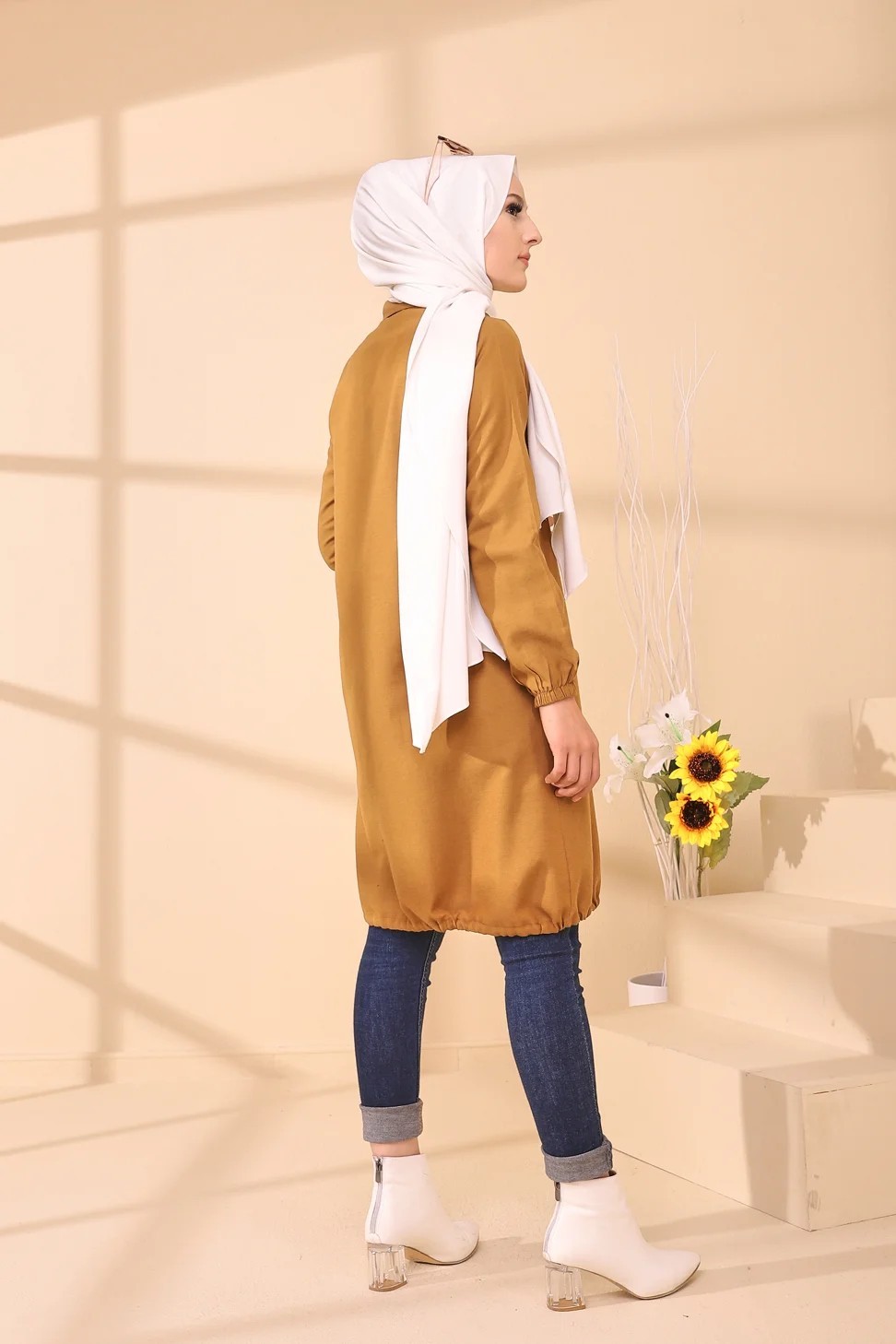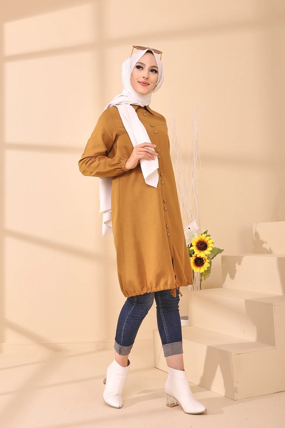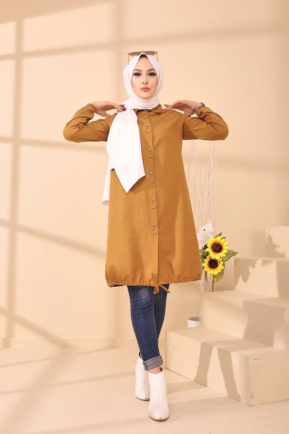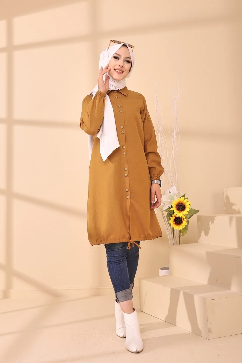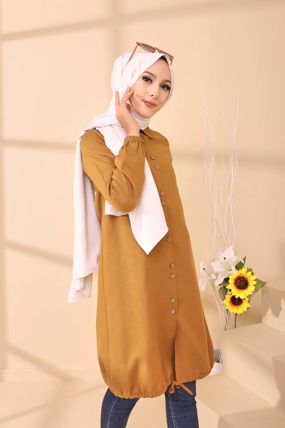 Tunique-Chemise ample boutonnee (Vetement style moderne pour femme voilee) - Couleur bronze