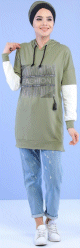 Ensemble décontracté avec tunique à capuche ample et pantalon assorti (Vetement hijab de sport mastour pour femme voilée) - Couleur kaki - REF. 36268 (35.00 €)