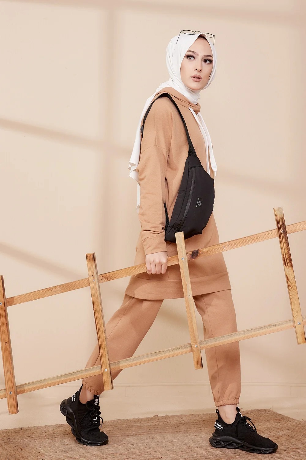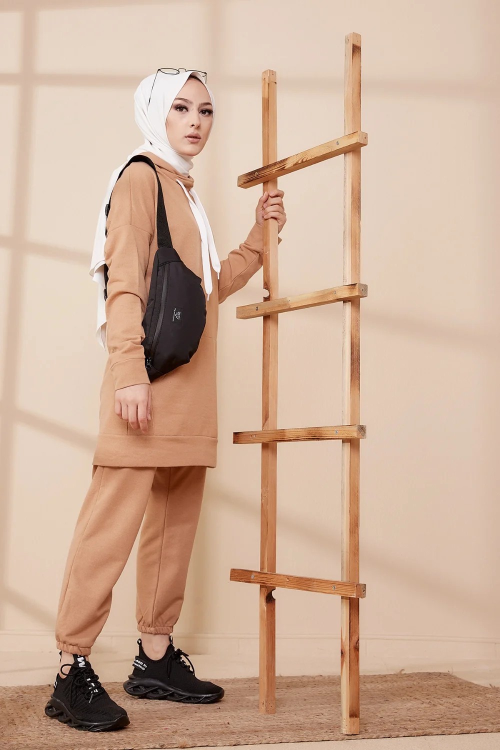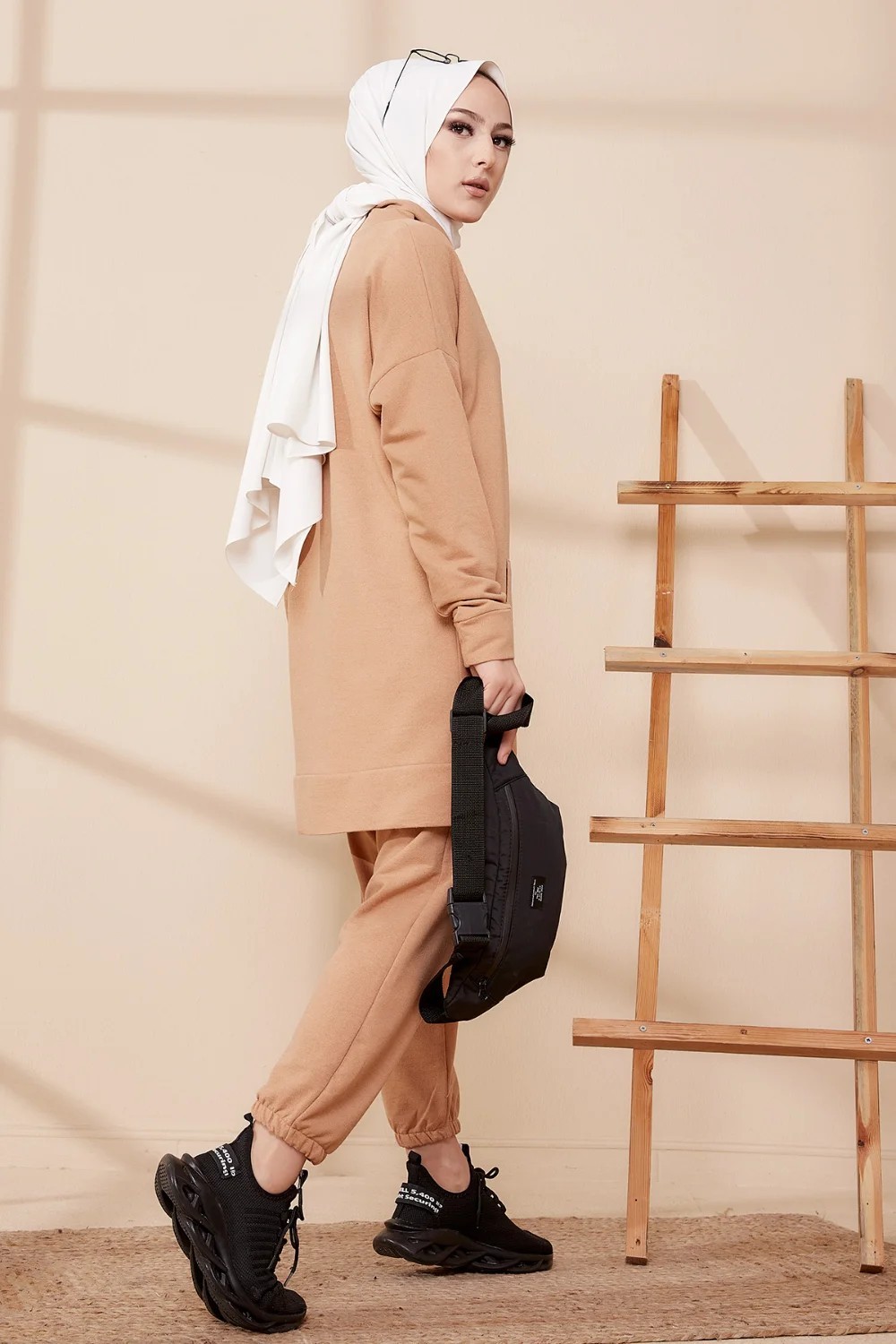 Ensemble décontracté tunique et pantalon (Tenue de Sport Hijab) - Couleur biscuit Vetement & Accessoire