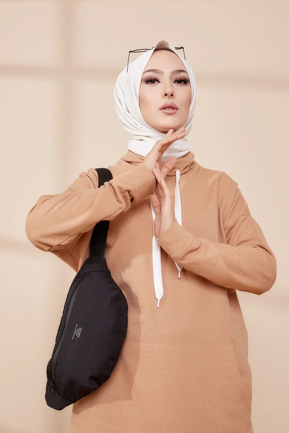 Tunique ample avec capuche (Tenue décontractée et sport pour femme musulmane) - Couleur marron - REF. 37578 (28.00 €)