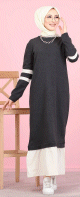 Robe longue moderne bi-couleur (Vetement hijab pas cher de Turquie pour femme voilée) - Couleur gris anthracite et blanc - REF. 32193 (19.90 €) - En Promotion à 16.90 €