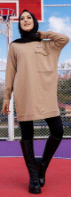Tunique décontractée ample avec grande poche (Sweat femme Hijab) - Couleur vison - REF. 35265 (22.00 €)