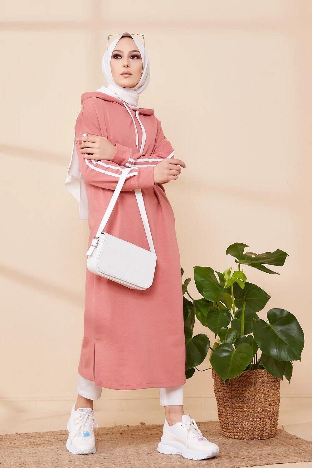Tunique avec capuche pour femme (Vêtement décontracté mastour pour hijab) - Couleur vieux rose Vetement & Accessoire