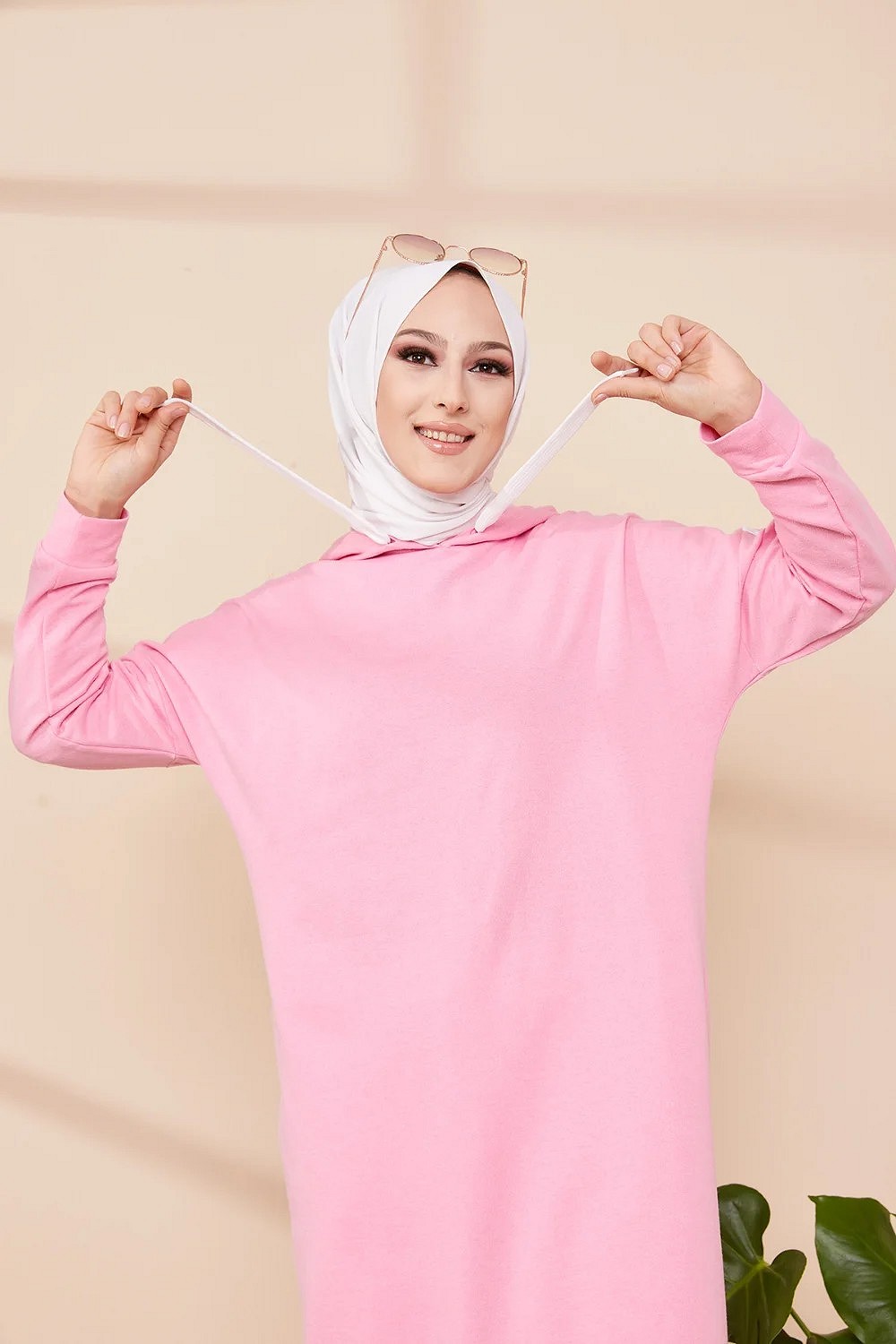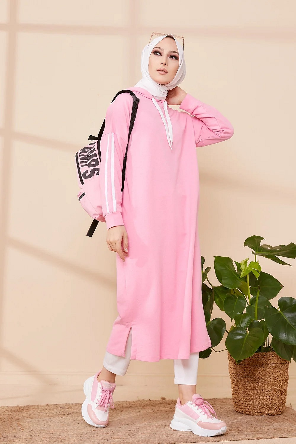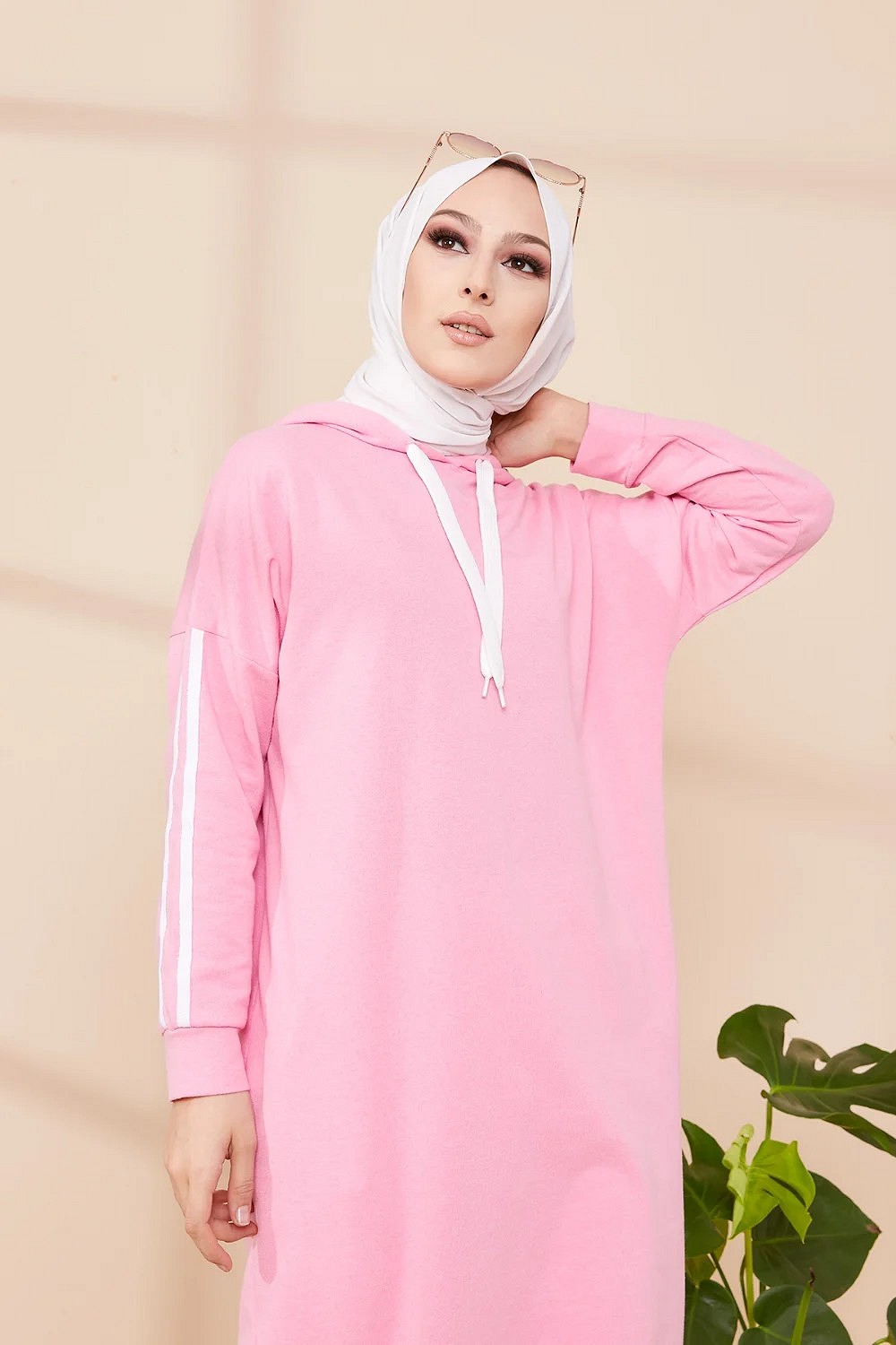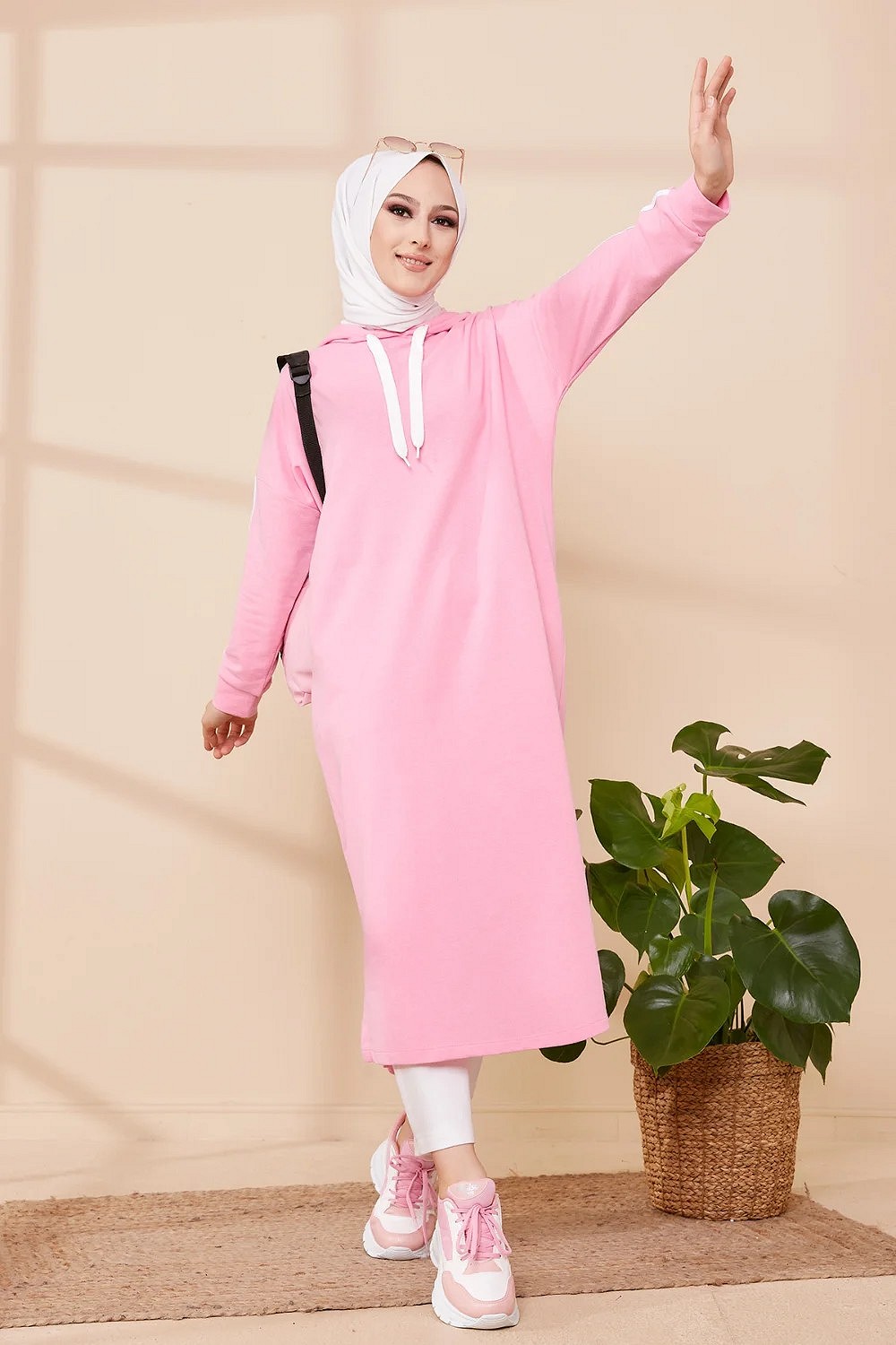Tunique décontractée avec capuche pour femme (Vetement hijab moderne pour jeune) - Couleur rose Vetement & Accessoire