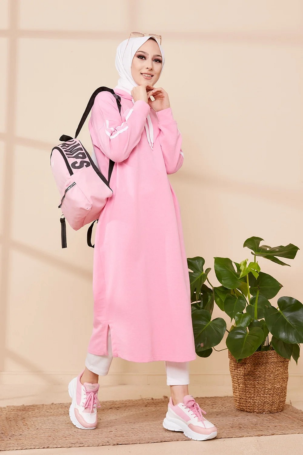 Tunique decontractee avec capuche pour femme (Vetement hijab moderne pour jeune) - Couleur rose