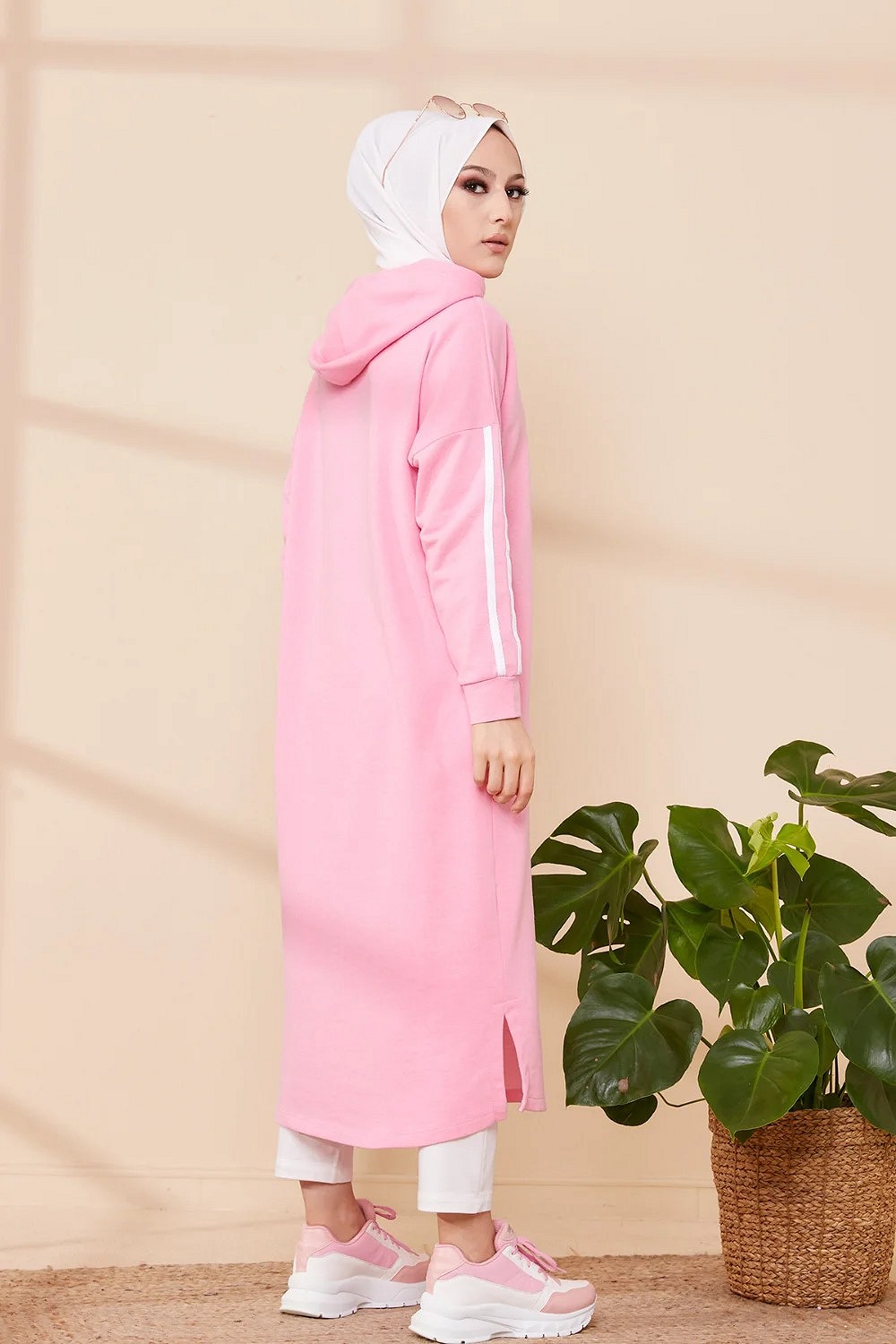 Robe streetwear avec capuche (Vêtements islamiques modernes pour femmes musulmanes) - Couleur rose poudré - REF. 33238 (19.90 €)