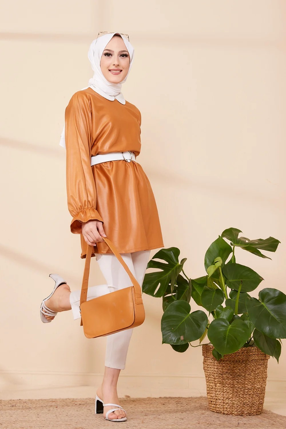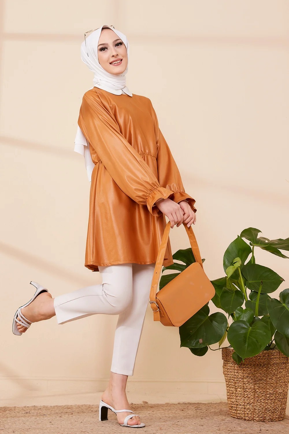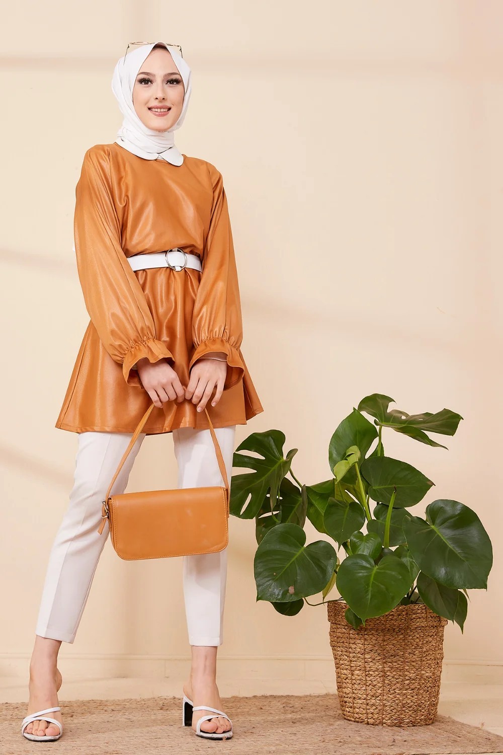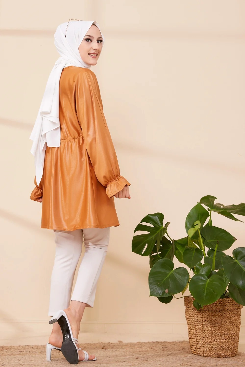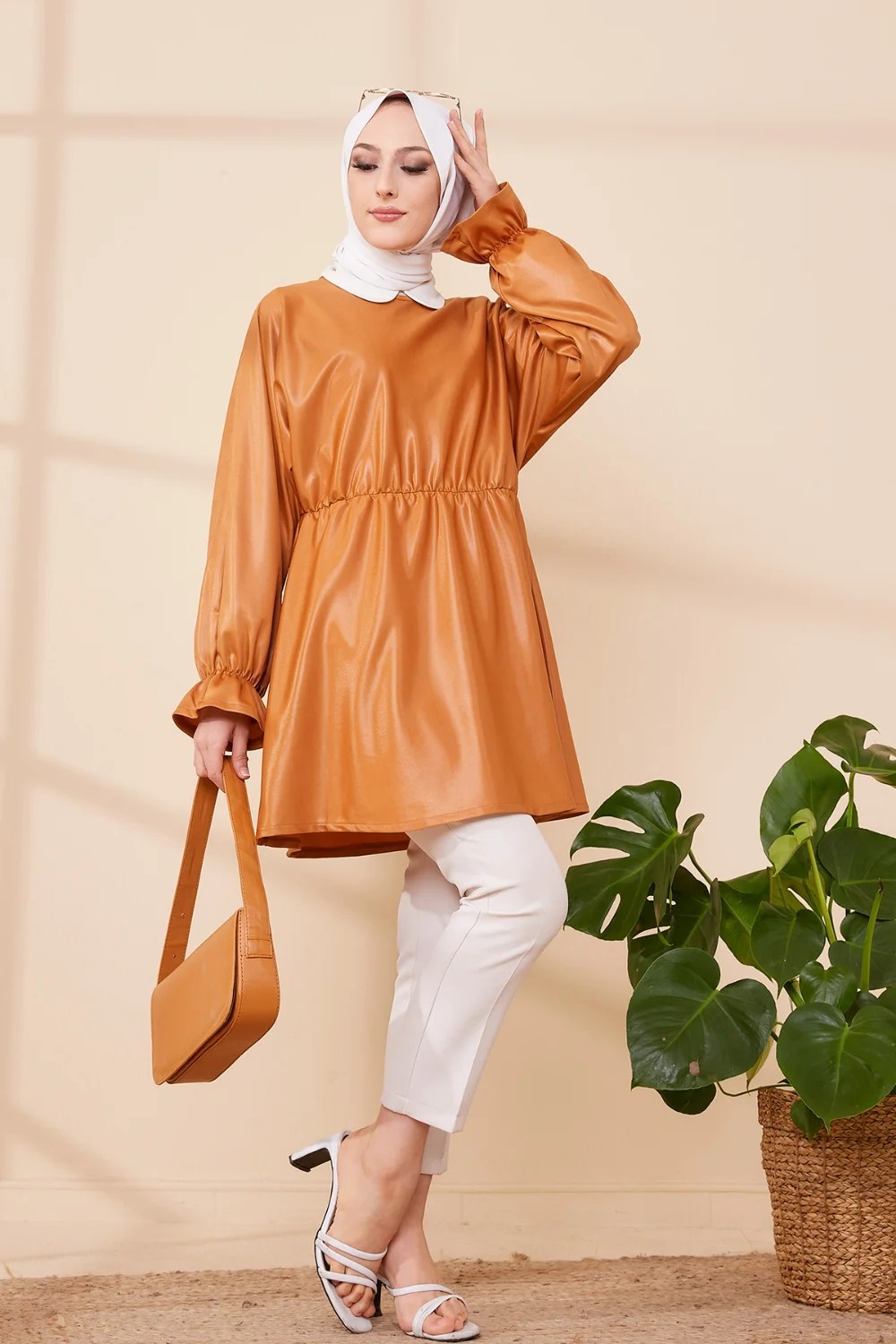 Tunique en skai (simili cuir) pour femme (Tenue pour hijab) - Couleur bronze