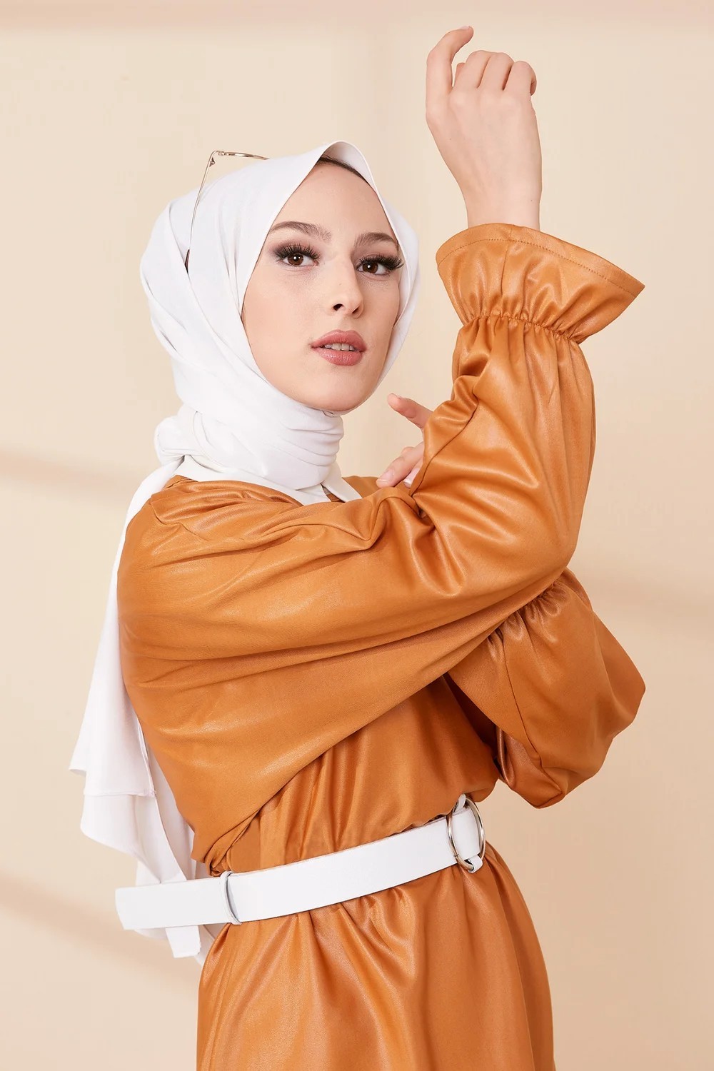 Tunique en skaï (simili cuir) pour femme (Tenue pour hijab) - Couleur bronze Vetement & Accessoire