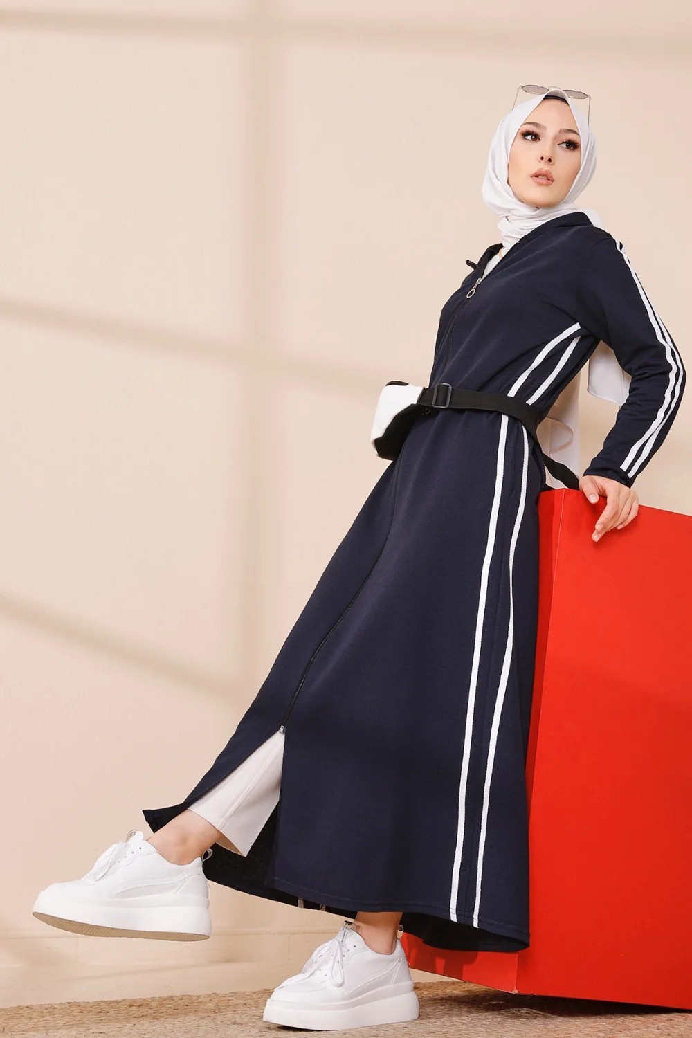 Gilet long - Veste longue sportswear (Tenue sport pour femme musulmane) - Couleur bleu marine Vetement & Accessoire