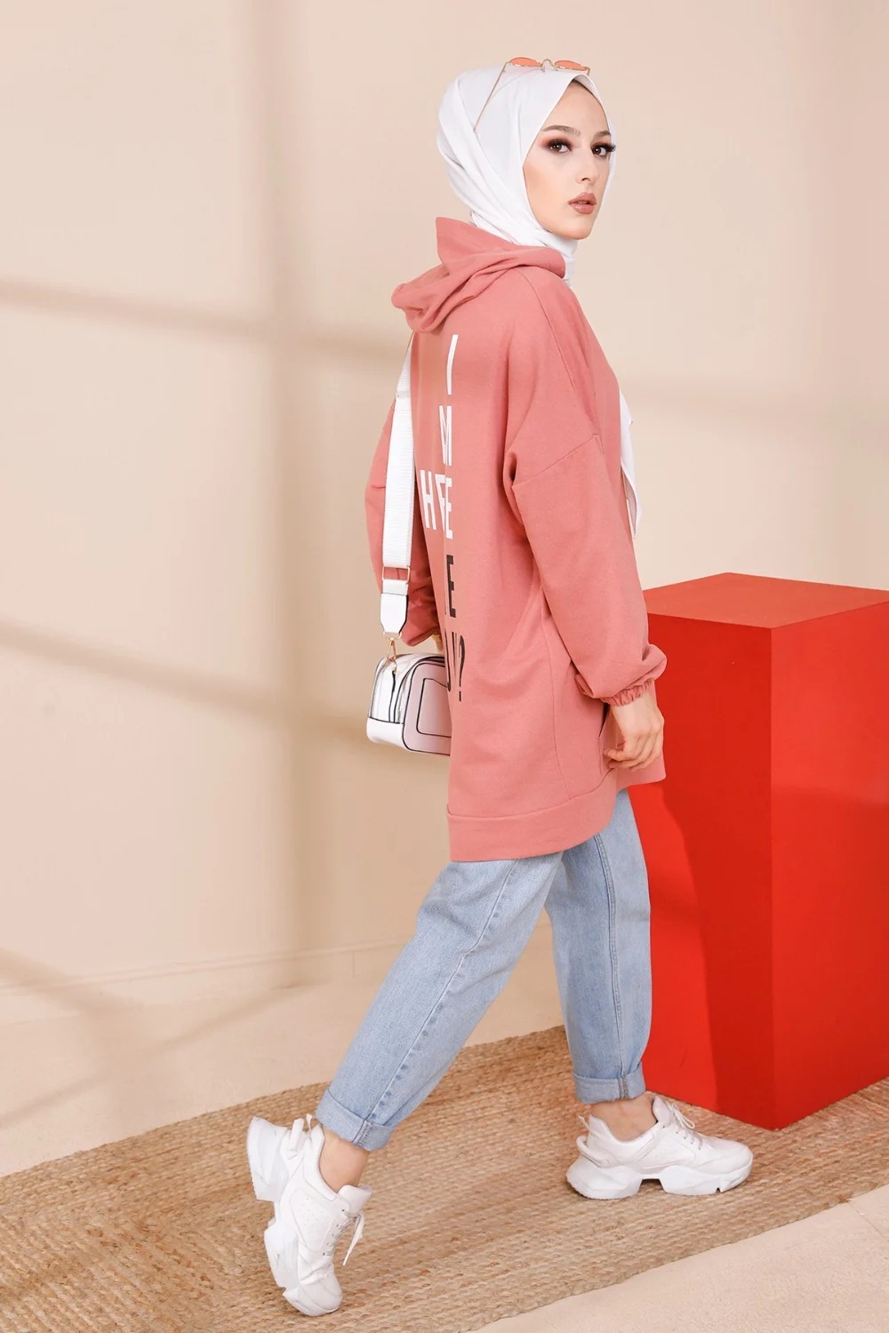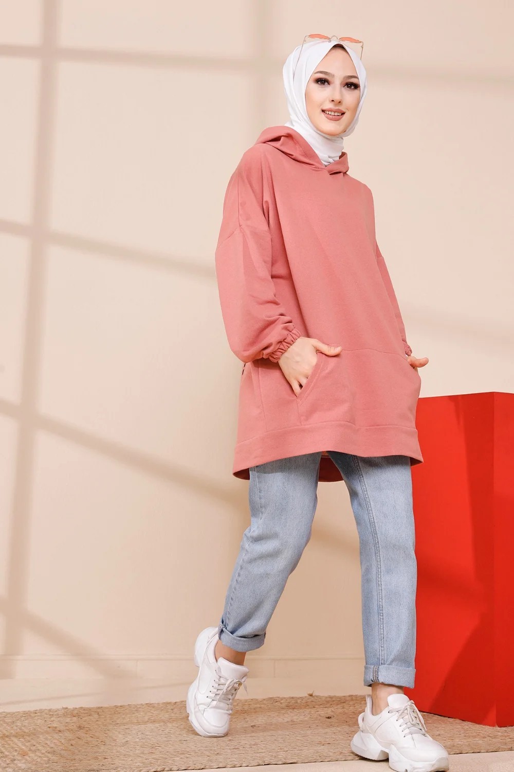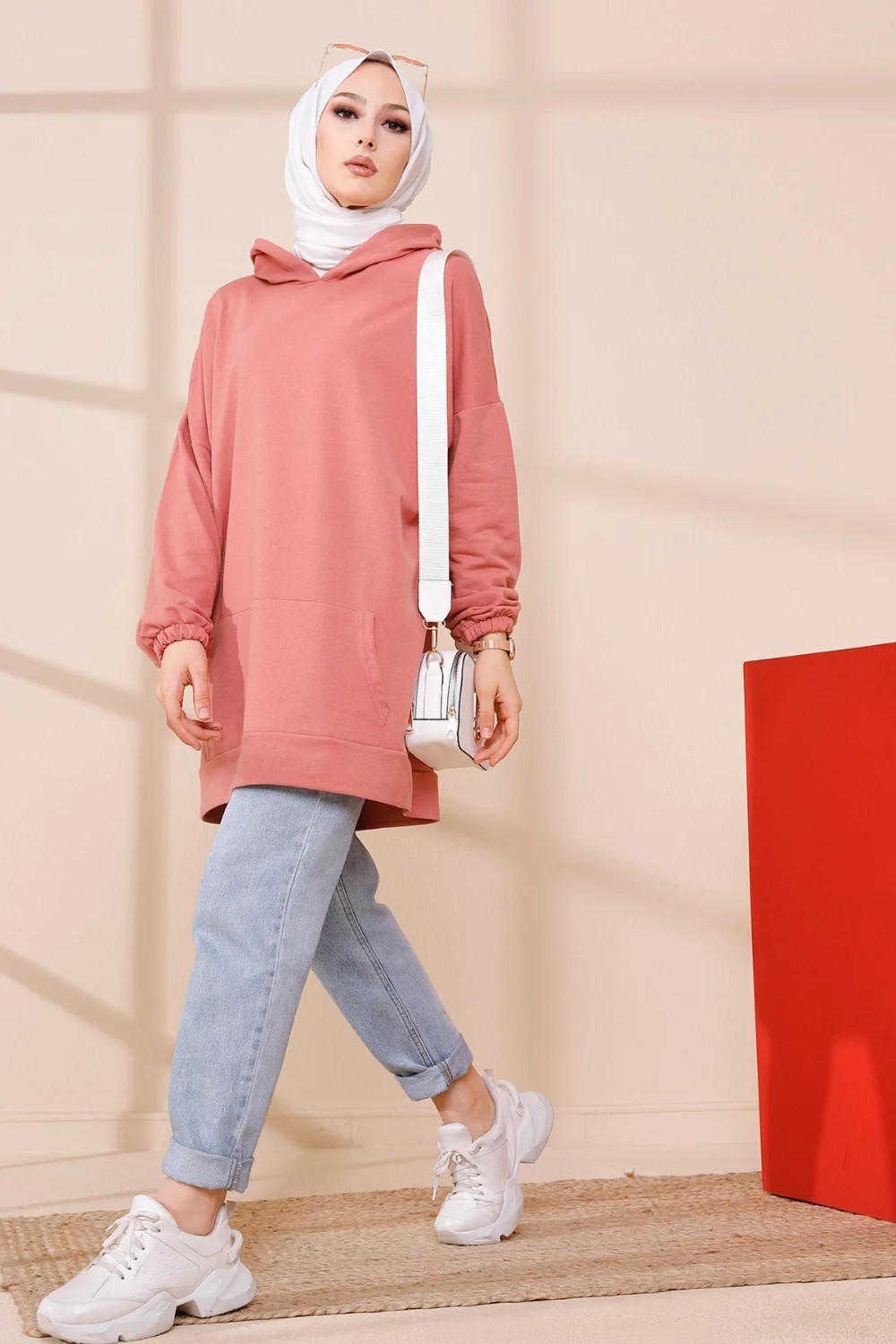 Tunique Casual Style Sweat-Shirt pour femme (Tenue Hijab moderne) - Couleur Rose poudré - REF. 32907 (25.00 €) - En Promotion à 19.90 €