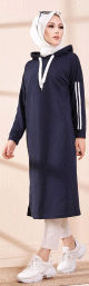 Tunique sweat long avec capuche pour femme (Vetement hijab moderne et sport) - Couleur bleu marine - REF. 35558 (23.00 €)