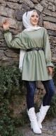 Tunique en skaï (simili cuir) pour femme (Tenue chic et moderne pour hijab) - Couleur kaki - REF. 35783 (16.90 €)