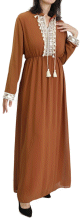 Robe fluide pour femme avec strass et pompons - Couleur Caramel - REF. 30034 (30.00 €) - En Promotion à 22.00 €